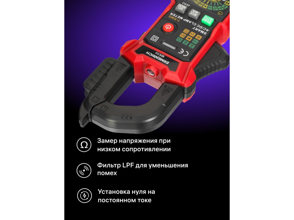 Všechna měření se provádějí metodou True RMS, tj. měřením skutečné střední kvadratické hodnoty, což zvyšuje přesnost měření. Při měření stejnosměrného proudu můžete použít funkci DCA Zero ke kompenzaci zbytkové magnetizace. Přístroj je inteligentní, což znamená, že dokáže detekovat a měřit příchozí signál v plně automatickém režimu: Funkce Smart funguje pro test kontinuity, měření napětí a odporu.