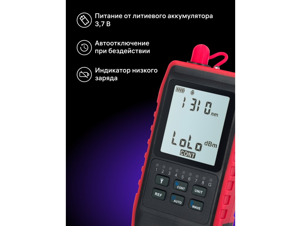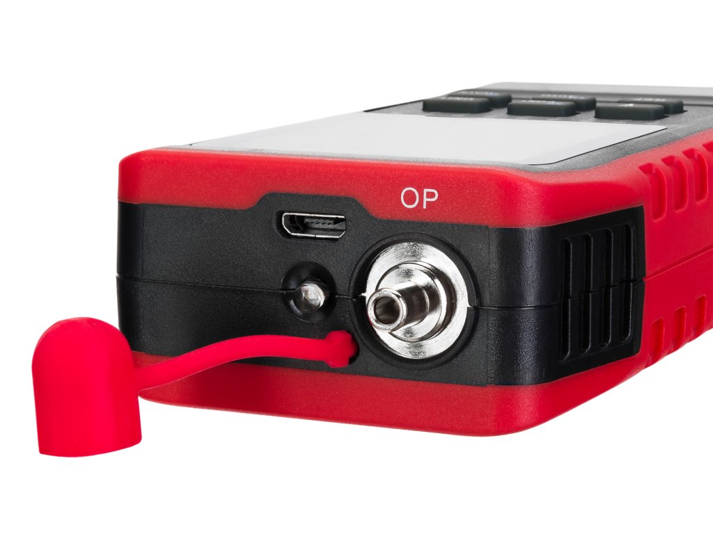 K dispozici je šest vlnových délek. Podporuje jednovidové (single-mode) a vícevidové (multi-mode) kabely a používá konektory FC/SC/ST pro optická vlákna a síťový konektor RJ45. Přístroj má vestavěný podsvícený displej, pod nímž jsou LED indikátory a ovládací tlačítka. Přístroj je napájen pomocí dobíjecí baterie, která se dobíjí přes microUSB kabel. Pro úsporu energie baterie je multimetr vybaven funkcí automatického vypnutí, která se aktivuje po 30 minutách nečinnosti.