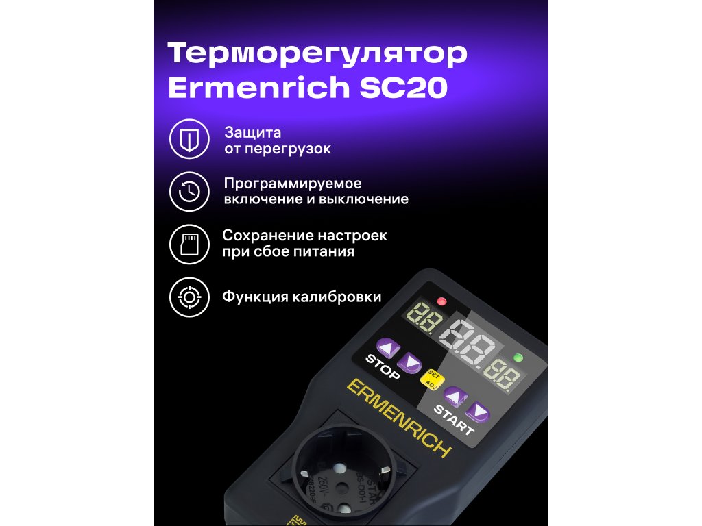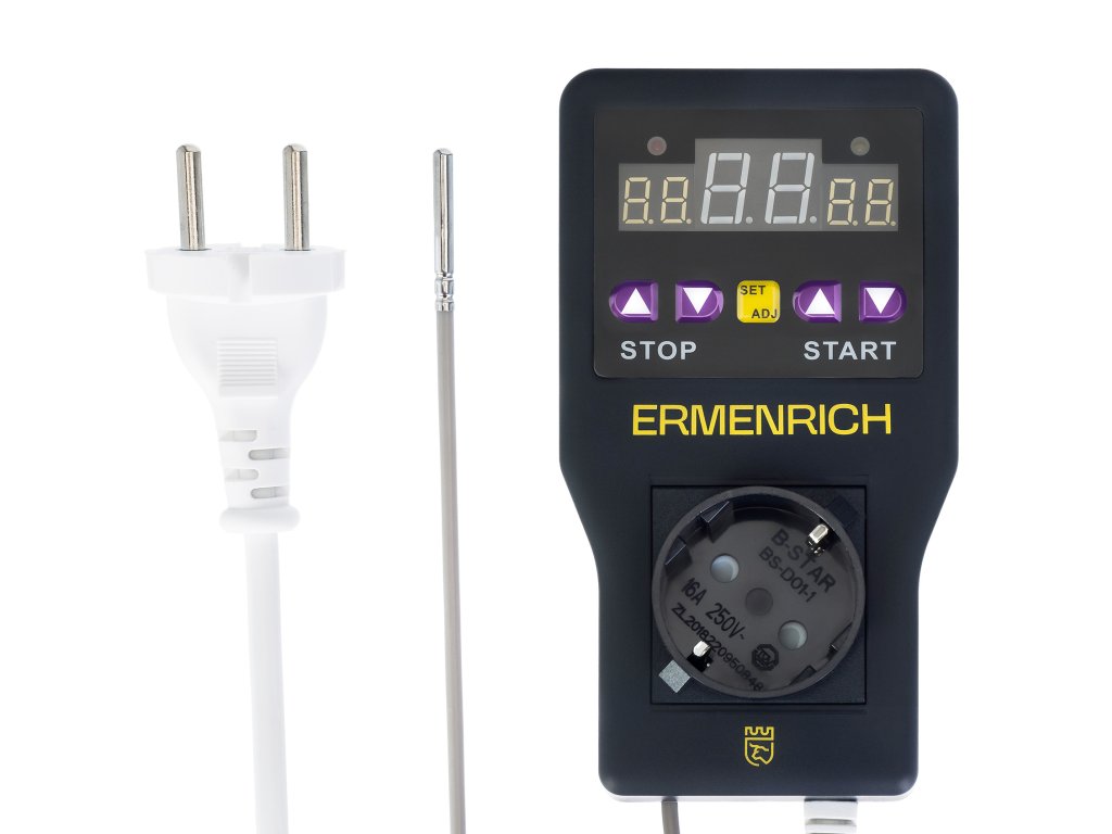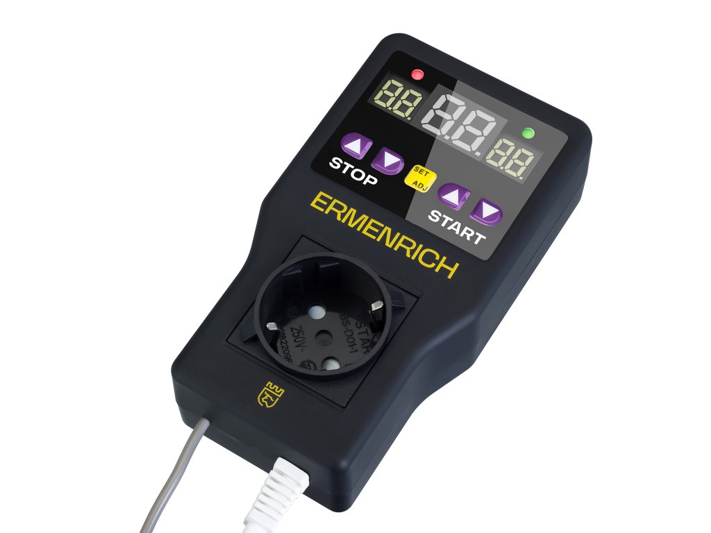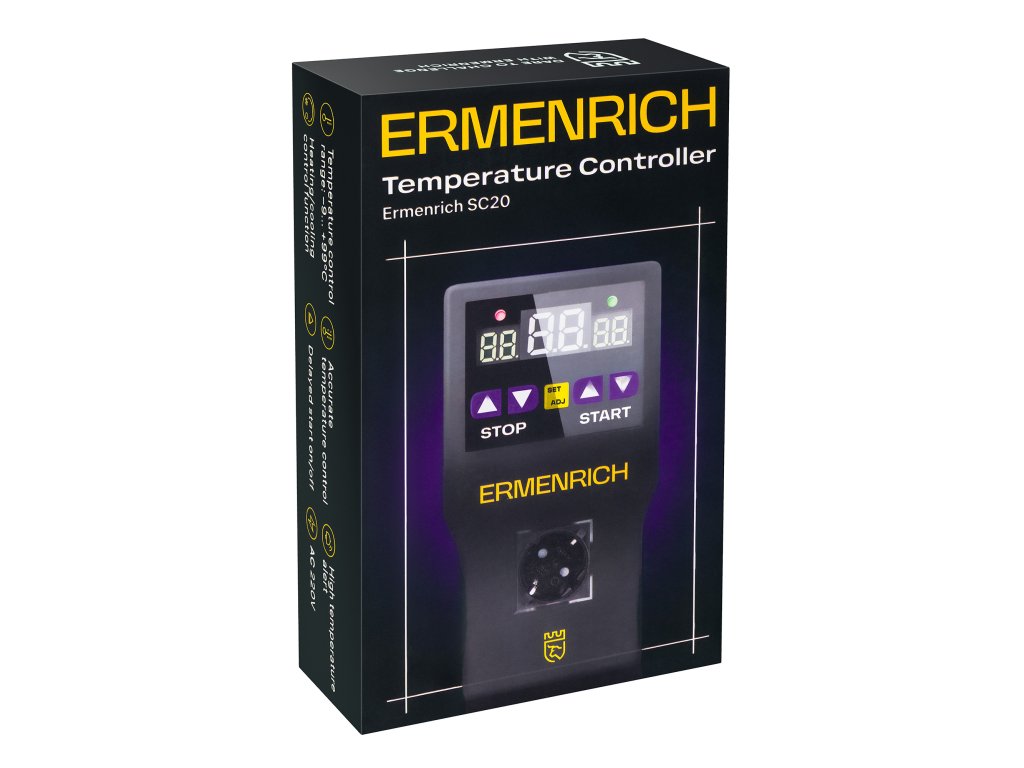 Mikroprocesorový regulátor teploty Ermenrich SC20 umožňuje regulovat teplotu v libovolných prostorách – obytných, kancelářských, průmyslových, na farmách i ve sklenících. Můžete jej připojit k topným zařízením, klimatizacím, systémům ohřevu vody atd. Snímač regulátoru snímá okolní teplotu. Když teplota dosáhne požadované úrovně, buď zapne připojené zařízení, nebo jej vypne, čímž udržuje požadovanou teplotu.