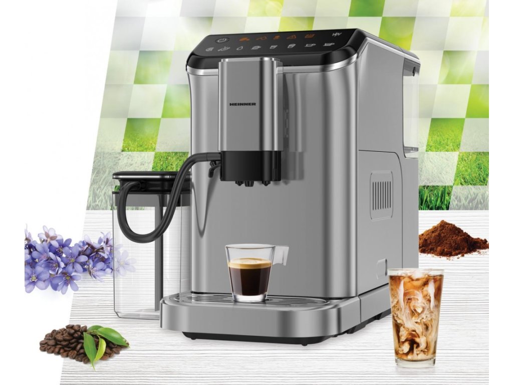 HEINNER HEMA-D20DGREY je moderní automatický kávovar s výkonem 1450 W, vybavený vestavěným mlýnkem na čerstvá zrna. Umožňuje snadnou přípravu espressa, cappuccina, latte a dalších kávových specialit díky intuitivnímu dotykovému ovládání. Kapacita zásobníku na vodu je 1,8 litru. Elegantní šedé provedení a kompaktní design vhodný do každé kuchyně.