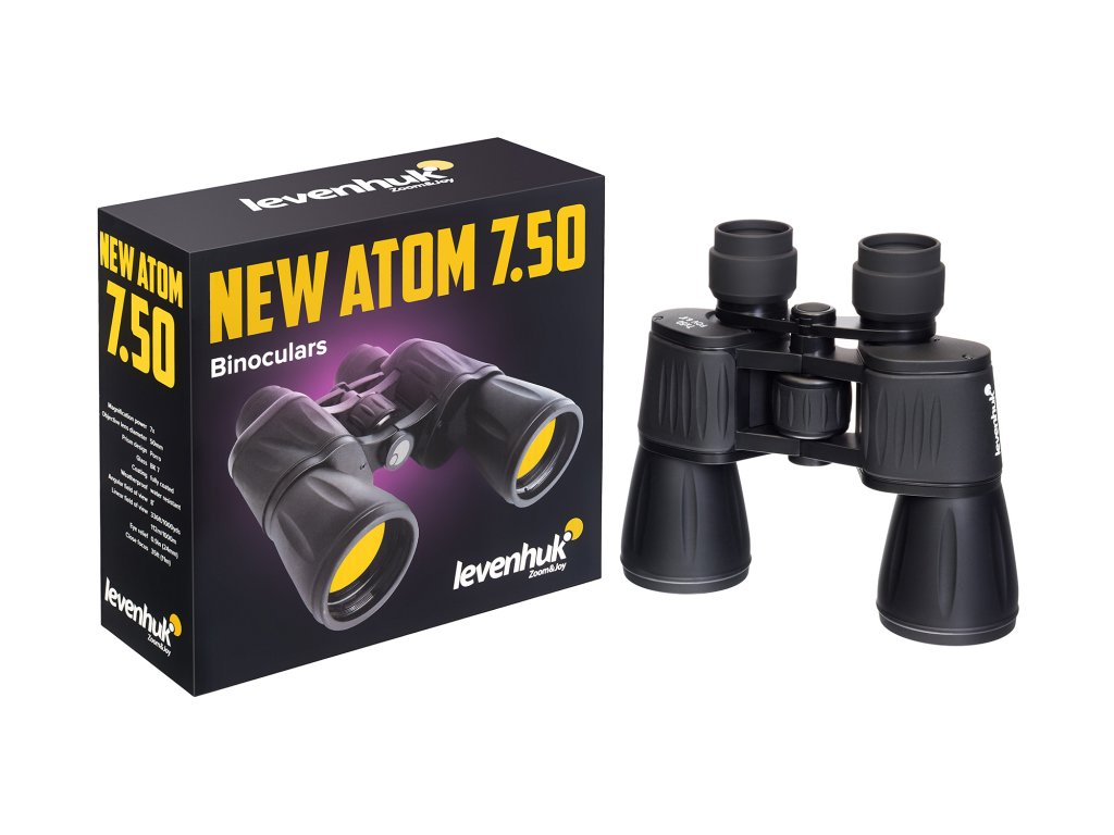 Tělo a mechanické součásti binokulárního dalekohledu Levenhuk New Atom 7x50 jsou vyrobeny z hliníkové slitiny. Binokulární dalekohled je pro bezpečnější uchopení pogumovaný, takže neklouže z mokrých rukou. Díky nízké hmotnosti pod 800 g se pohodlně nosí celý den, aniž by výrazně zvyšoval hmotnost vaší výbavy. Celkově se jedná o spolehlivý a praktický model pro základní požadavky. Součástí balení je popruh na krk, pouzdro na přenášení, krytky objektivů a hadřík na čištění objektivů.