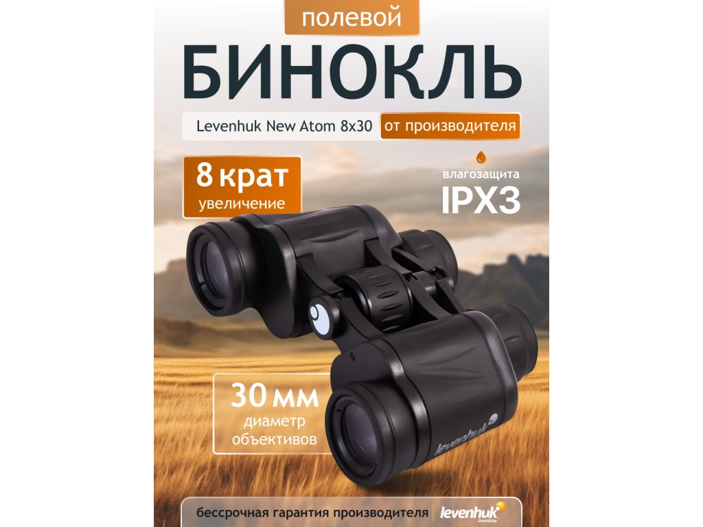 Binokulární dalekohled Levenhuk New Atom 8x30 poskytuje praktickou rovnováhu mezi zvětšením, zorným polem a schopností zaostřit na blízko. 30 mm objektivy a 8x zvětšení umožňují binokulárnímu dalekohledu zaostřit na objekt vzdálený od pozorovatele pouhých 6 metrů. Úhlové zorné pole je 7,5°, což znamená zorné pole 132 metrů na vzdálenost 1 km. To činí z tohoto dalekohledu všestranného a spolehlivého společníka pro pozorovatele ptáků, rybáře, lovce nebo turisty.