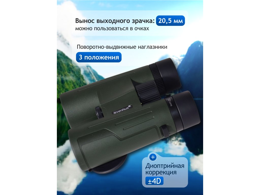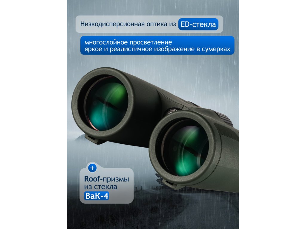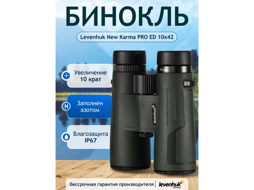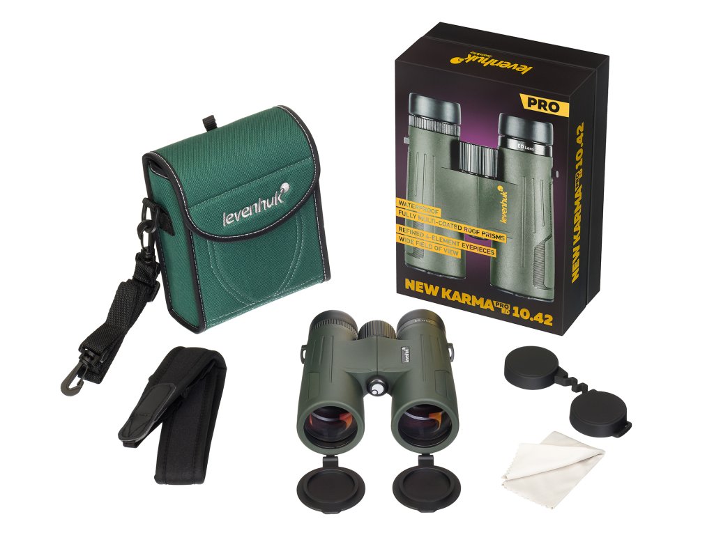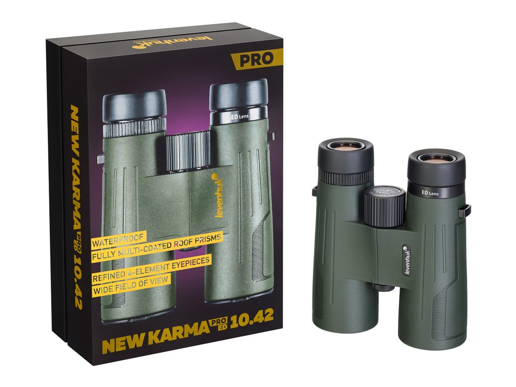 Zvětšení 10x a zorné pole 7° umožňují používat dalekohled k detailnímu a panoramatickému pozorování na střední a velké vzdálenosti. Optická konstrukce přístroje je založena na kompaktních střechových hranolech. Pozitivně ovlivňuje ergonomii pouzdra a hmotnost celého výrobku, takže je dalekohled mimořádně pohodlný pro přenášení a používání na cestách. Objektivy Levenhuk New Karma PRO ED 10x42 jsou vyrobeny z vysoce kvalitního ED skla a jsou odolné vůči chromatické aberaci. Hranoly jsou vyrobeny ze skla BaK-4 s vysokým indexem lomu. Dalekohled je vybaven optickými členy s vícenásobnou antireflexní vrstvou, které zajišťují pohodlné pozorování za šera bez ztráty kvality obrazu.