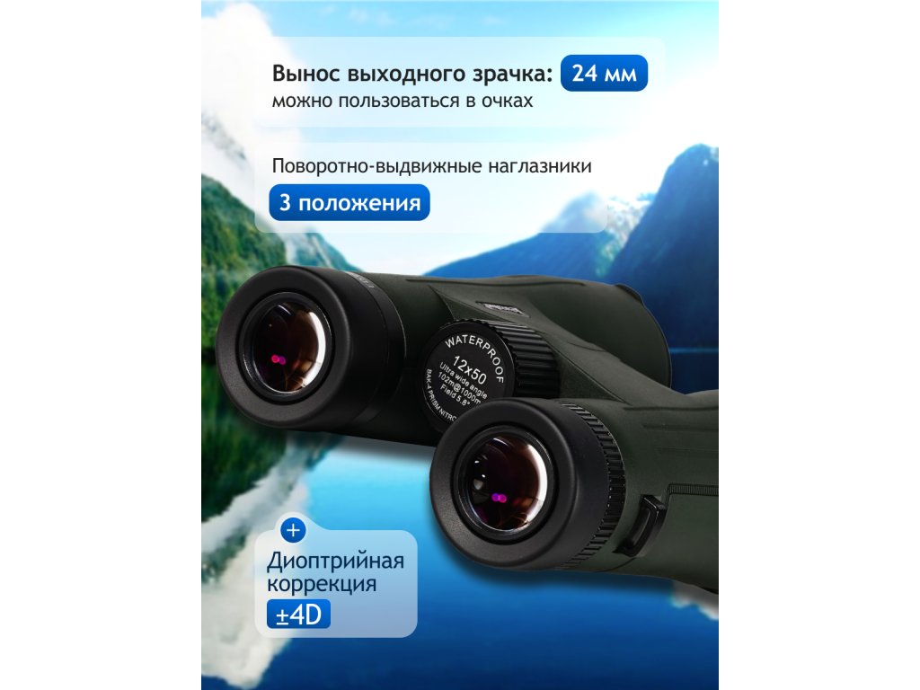 - 12násobné zvětšení, 50mm objektivy s vysokou světelností, čočky ze skla ED