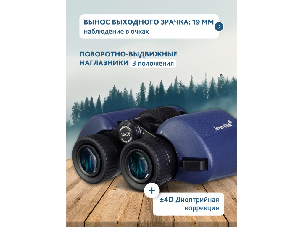 Optika je vybavena čočkami z vysoce kvalitního skla BaK-4 a Porro hranoly. Optika s plně vícenásobnou povrchovou úpravou na všech plochách vystavených vzduchu zajišťuje jasný a kontrastní obraz. Obraz zůstává jasný bez ohledu na světelné podmínky, díky čemuž je tento binokulární dalekohled ideální pro pozorování za jasného denního světla i za slabého soumraku. 10x zvětšení a čočky objektivu o průměru 50 mm zajišťují vynikající propustnost světla a umožňují detailní pozorování vzdálených objektů. Zorné pole 6,5° umožňuje rychlé prohledávání rozsáhlých oblastí. To je zvláště užitečné při pozorování divoké zvěře nebo v rychle se měnících taktických situacích.