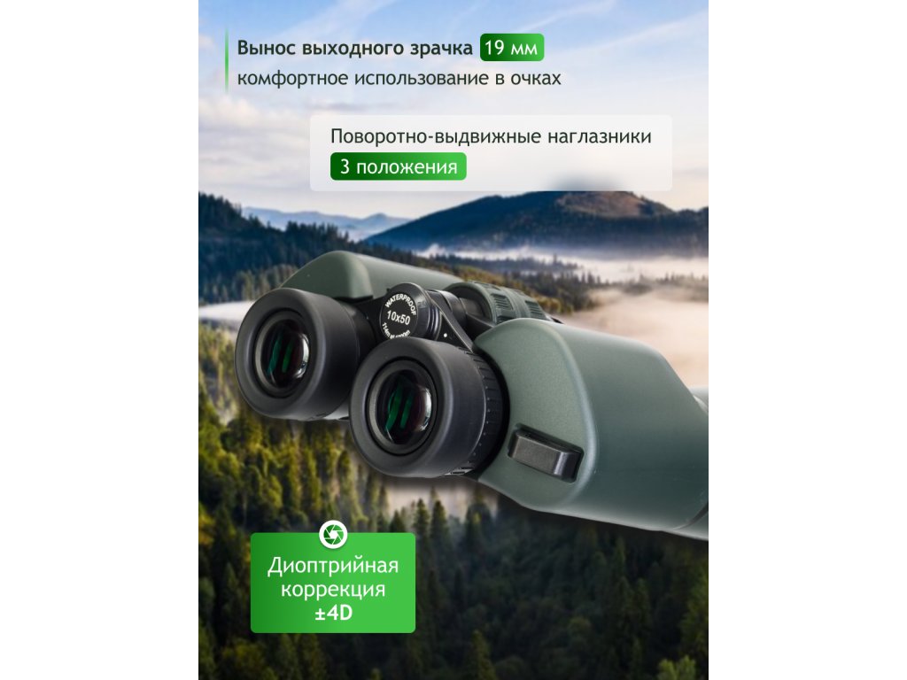 Binokulární dalekohled je vybaven dioptrickým nastavením a centrálním ostřením s nastavitelnou mezipupilární vzdáleností 56 mm až 70 mm. Otočné očnice nabízejí tři polohy pro pohodlné používání.