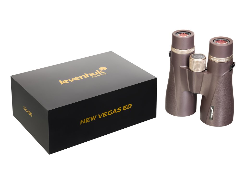 Klíčovou výhodou tohoto dalekohledu je jeho dobře navržený optický systém. Je vyroben z vysoce kvalitních střechových hranolů z optického skla BaK-4, které poskytují vynikající schopnost shromažďovat světlo. Kompaktní konstrukce hranolů disponuje malými rozměry, takže se binokulární dalekohled pohodlně přenáší a používá. Objektiv je vyroben ze skla s velmi nízkým rozptylem, které snižuje chromatickou aberaci a zachovává přesnou reprodukci barev. Pro pohodlí uživatele nabízí binokulární dalekohled Levenhuk New Vegas ED 12x56 několik možností nastavení. Patří mezi ně otočné očnice s nastavitelnou výškou a aretací, které jsou bezpečné pro citlivou pokožku kolem očí. Binokulární dalekohled má také možnost nastavení dioptrií v rozsahu ±4D a nastavení mezipupilární vzdálenosti od 63 mm do 78 mm. Šroubem středového zaostřování se upravuje ostrost obou optických tubusů.