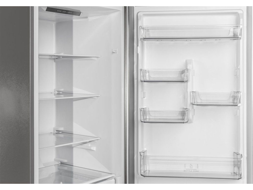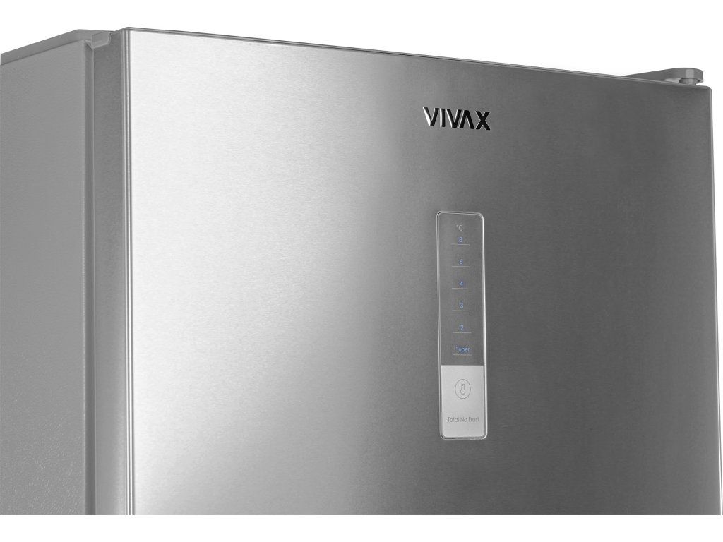 Kombinovaná chladnička Vivax CF-310E DNFX přináší špičkovou technologii uchovávání potravin v elegantním nerezovém balení. Tento model je vybaven přehledným externím LED displejem na dveřích, který umožňuje snadnou kontrolu a nastavení teploty bez nutnosti otevírání chladničky, čímž šetří energii a udržuje stabilní vnitřní klima. Díky beznámrazovému systému Total No Frost se můžete rozloučit s manuálním odmrazováním a užívat si potraviny, které zůstanou déle čerstvé a plné vitamínů.