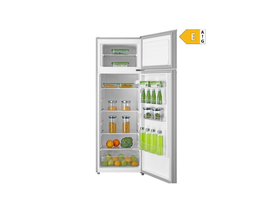 VIVAX DD-235E S je praktická kombinovaná chladnička s mrazákem nahoře, která nabízí dostatek prostoru pro běžnou domácnost a zároveň působí moderním nerezovým vzhledem. Hodí se do kuchyní, kde je důležitá jednoduchá obsluha, spolehlivý provoz a přehledné uspořádání potravin. Díky čistému designu a úspornému provozu je vhodná jako univerzální volba pro každodenní používání.