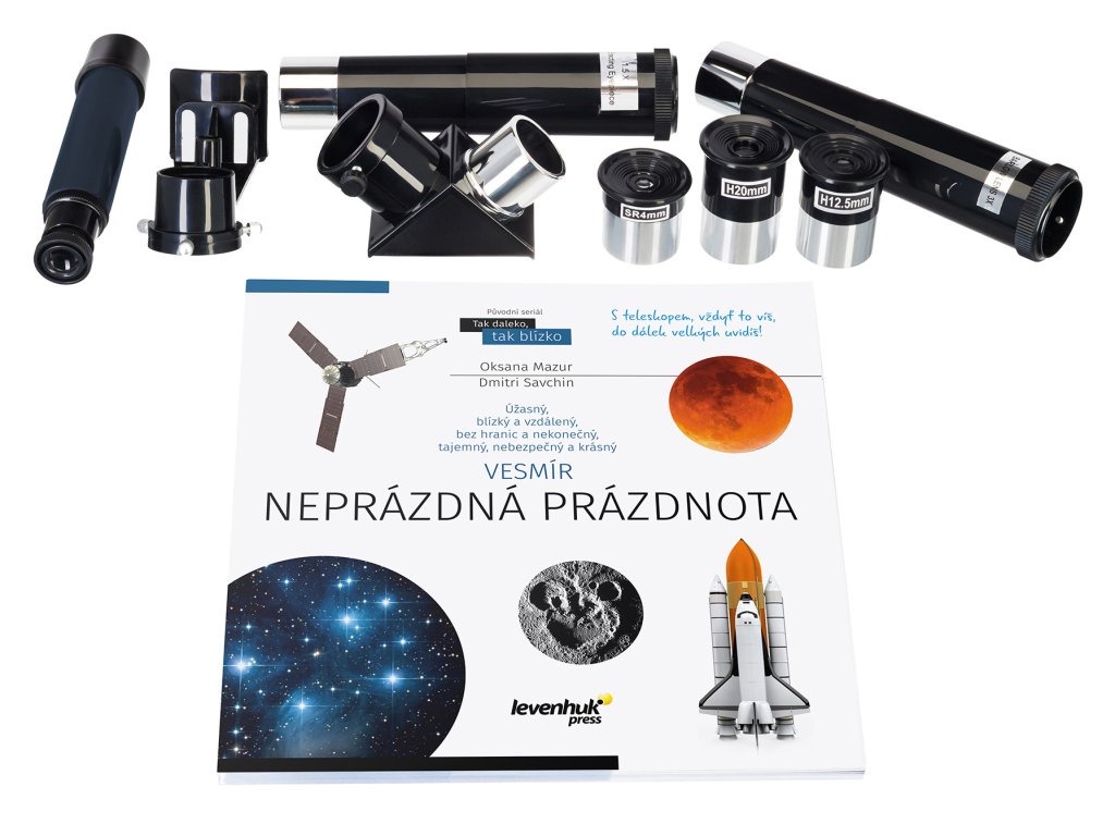Veškeré příslušenství můžete pohodlně umístit na přihrádku uprostřed stativu, abyste jej měli vždy po ruce. Hvězdářský dalekohled je vybaven standardním 1,25" okulárovým výtahem, takže v případě potřeby můžete experimentovat s širokou škálou volitelného příslušenství. Další zvláštností tohoto hvězdářského dalekohledu Levenhuk Discovery Spark 709 EQ je vzdělávací publikace „Vesmír. Neprázdná prázdnota“. Tato ilustrovaná příručka vám pomůže dozvědět se mnoho informací o obloze ještě předtím, než ji začnete pozorovat, nebo si osvěžit své stávající znalosti.