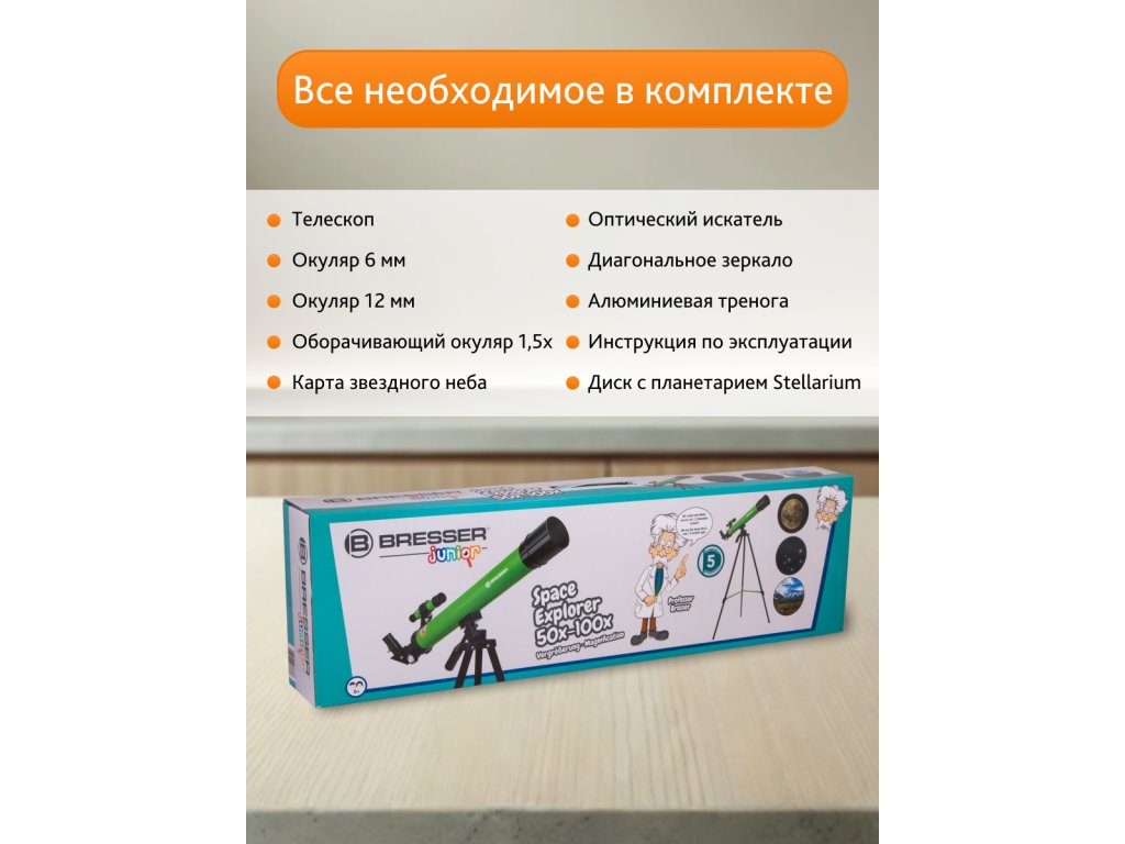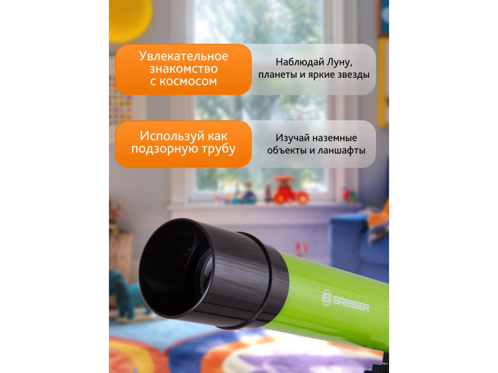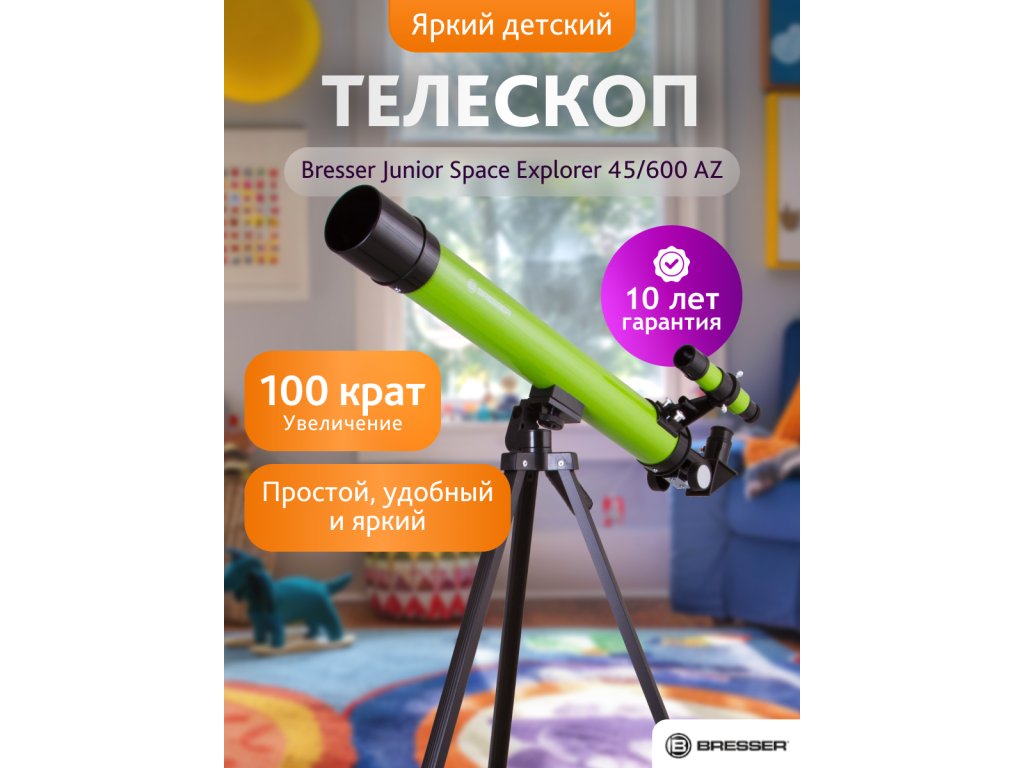 Teleskop Bresser Junior Space Explorer 45/600 AZ je navržen především pro mladé průzkumníky vesmíru. Jedná se o úžasný přístroj, s jehož pomocí se lze naučit základy astronomie. Zároveň přijde vhod i při pozorování přírody – sada obsahuje nezbytné příslušenství k pozorování pozemských cílů. Vzhledem k tomu, že je teleskop schopen produkovat správně orientovaný obraz, může snadno nahradit pozorovací dalekohled (spektiv) se zvětšením 100x.
