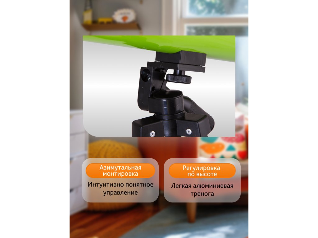 Mladí badatelé se rychle naučí tento teleskop ovládat. Optickým tubusem se pohybuje pomocí jediného šroubu na jeho azimutální montáži – umožňuje pohyb čtyřmi směry (doleva, doprava, nahoru a dolů). Hliníkový stativ je stabilní a spolehlivý. Lze jej výškově nastavit a snadno tak přizpůsobit dětské postavě.