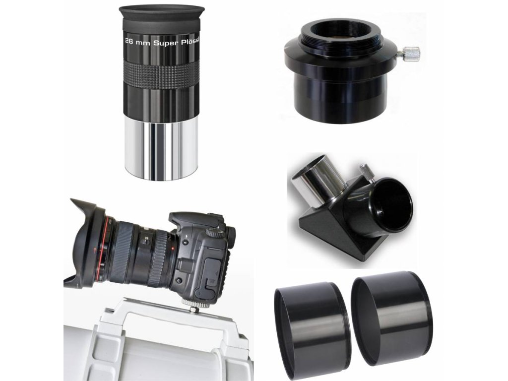 - Adaptér 50,8 mm až 31,7 mm (1,25") s integrovaným závitem T2 (pro váš fotoaparát je vyžadován adaptér T2)