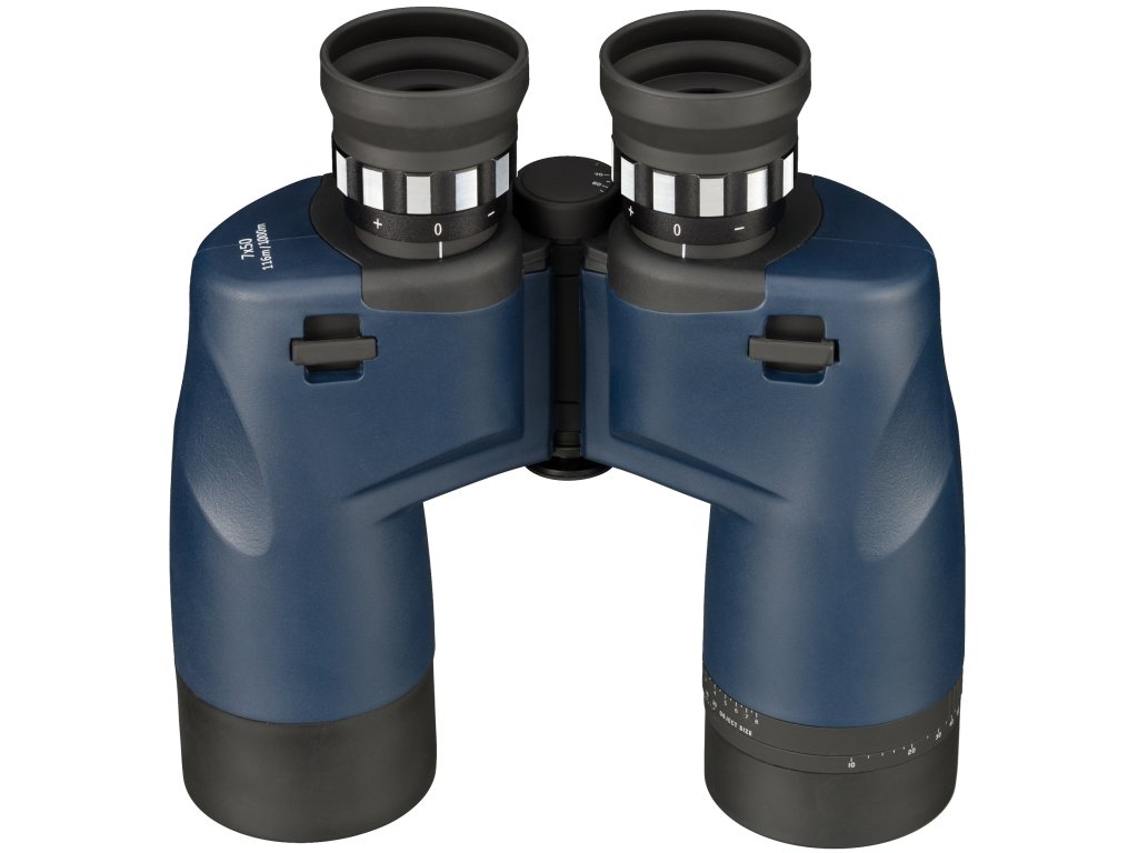 The Bresser Topas 7x50 is a classic marine binocular with porro prisms. The optics provide good twilight performance and the 7x magnification is the proven standard with this application. In addition, the Topas has an integrated and illuminated magnetic compass and a reticle for determining sizes or distances with help of the ring scale on the objective barrel. The binoculars are waterproof. Due to its ergonomic rubber armouring it has a good grip and is also protected against shocks. With the individual eyepiece focus once set you can get a sharp image for all relevant nautical distances.