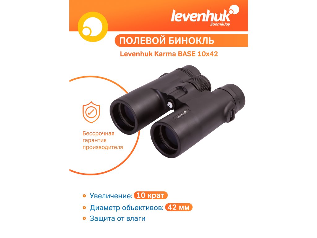 Binokulární dalekohled Levenhuk Karma BASE 10x42 je optický přístroj základní úrovně, který je neocenitelný pro myslivce, milovníky turistiky nebo přírodovědce. Optika poskytuje ostrý a kontrastní obraz; lehké tělo a kompaktní velikost nezatěžují pozorovatele. Skvělý ergonomický design umožňuje použití binokulárního dalekohledu pro zdlouhavé ruční pozorování. Dalekohled Levenhuk Karma BASE 10x42 je ideální volbou při pozorování života zvířat ve volné přírodě.