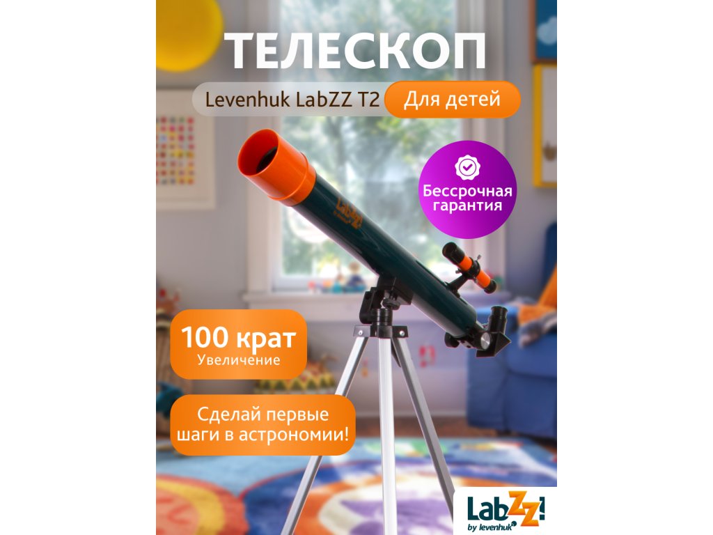 S teleskopem Levenhuk LabZZ T2 jsou první kroky v astronomii tak snadné! Tento dalekohled je ideální volbou pro začínajícího amatérského astronoma nebo dítě zajímající se o zkoumání vesmíru. Maximální zvětšení teleskopu je 100x, což umožňuje pozorování značného počtu velkých astronomických objektů. Pomocí teleskopu Levenhuk LabZZ T2 bude vaše dítě schopno prozkoumat všechna zákoutí sluneční soustavy a dokonce se pokochat fascinujícími panoramatickými pohledy na jasné objekty hlubokého vesmíru. Sada obsahuje vše potřebné k zahájení fascinujícího vesmírného dobrodružství!