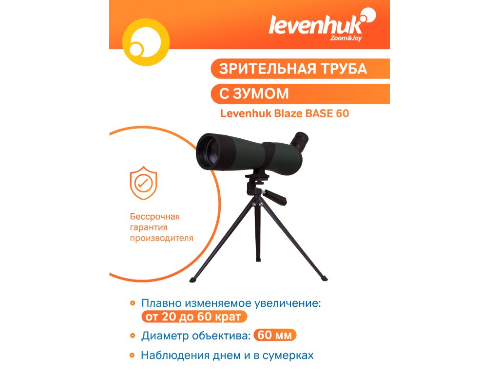 Spektiv Levenhuk Blaze BASE 60 umožňuje pozorovat i velmi vzdálené objekty. Díky objektivu s funkcí zoom můžete zvětšení měnit v rozmezí od 20x do 60x. Skleněná optika s antireflexní povrchovou úpravou vytváří ostrý, detailní obraz všech objektů kolem vás. Levenhuk Blaze BASE 60 je výkonný pozorovací dalekohled s velkou aperturou, který je ideální k dlouhodobému stacionárnímu pozorování divoké zvěře a městské architektury.