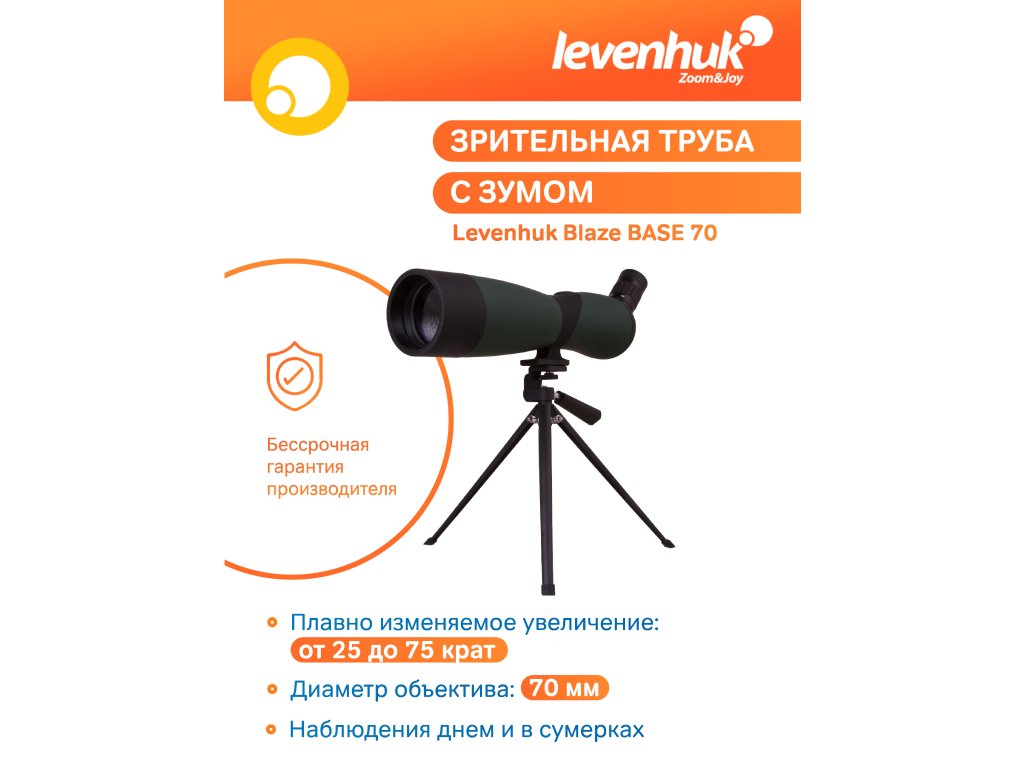 Spektiv Levenhuk Blaze BASE 70 je „pokročilejší“ model této řady, a je to tedy nejvýkonnější přístroj s vysokou aperturou. Objektiv má průměr 70 cm; maximální zvětšení je až 75x. Pomocí spektivu Levenhuk Blaze BASE 70 můžete studovat všechny vzdálené objekty – ptáky, zvířata, architekturu budov, pohybující se dopravní prostředky a přírodní krajinu. Sada obsahuje malý stolní stativ, který bude užitečný při dlouhodobém stacionárním pozorování.