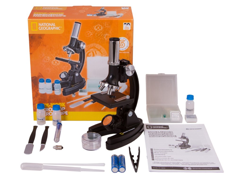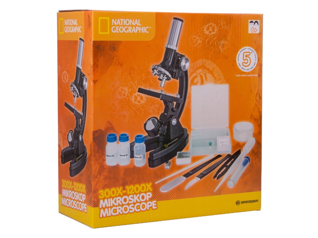Dětský mikroskop Bresser National Geographic 300–1200x dětem představí tajemný mikrosvět kolem nás. Tento mikroskop se snadno používá a je velmi spolehlivý. Dodává se včetně všeho potřebného pro první objevy. Sada obsahuje mnoho užitečného příslušenství: hotové preparáty, přístroje pro mikroskopickou práci a prázdné lahvičky pro uložení materiálu.