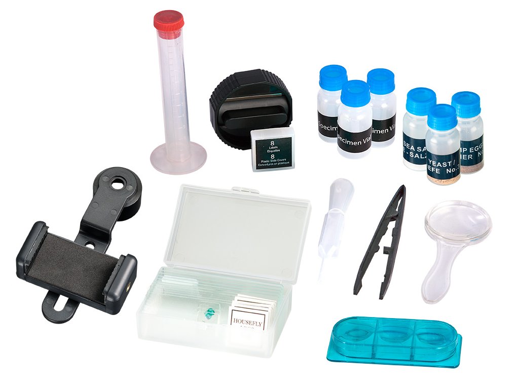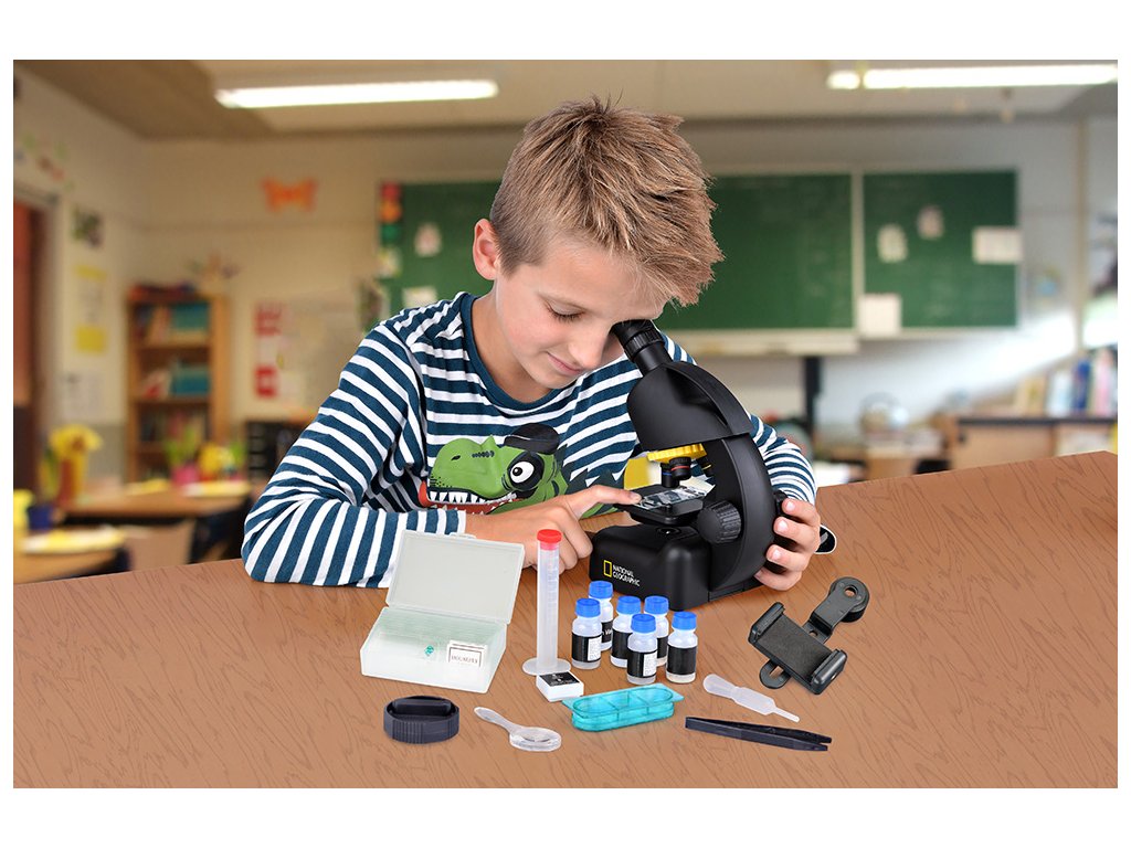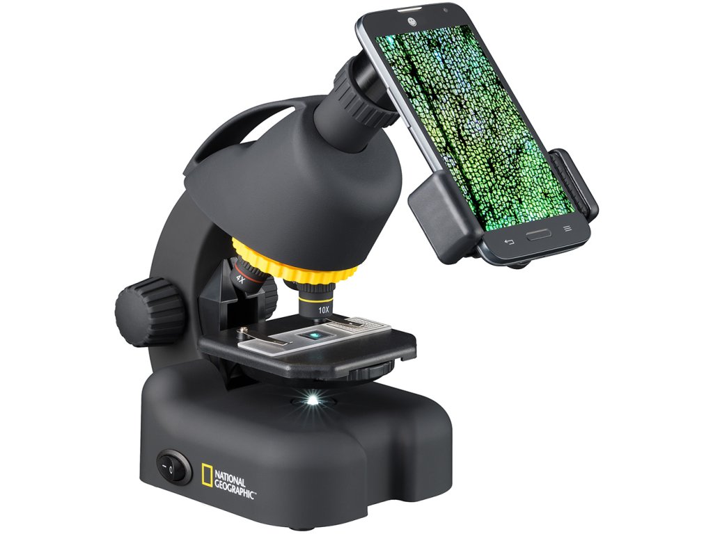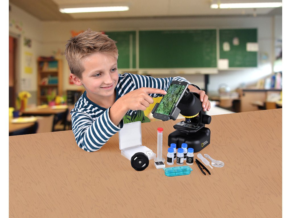 Mikroskop Bresser National Geographic 40–640x je určen zejména pro děti. Malí badatelé budou moci pozorovat mikroskopické preparáty, pěstovat korýše a podělit se o výsledky svých studií s kamarády. Mikroskop se dodává s adaptérem na smartphone – děti tedy mohou své chytré telefony použít k pořizování krásných snímků nebo videí pozorovaných objektů.