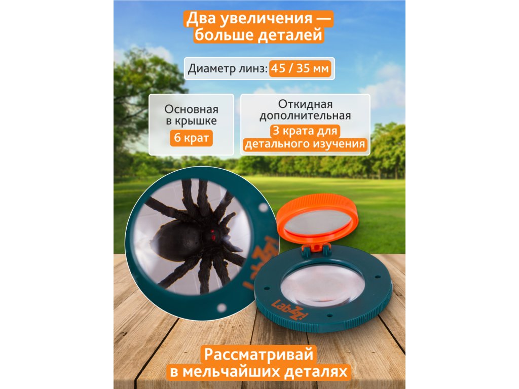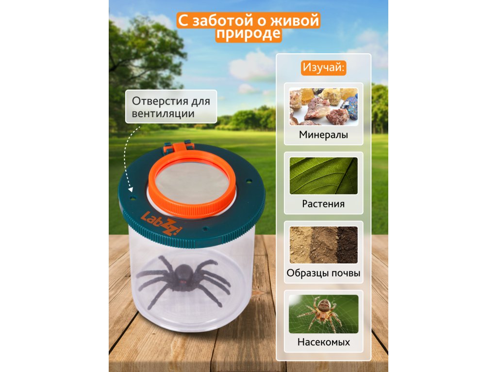Nádobka na hmyz Levenhuk LabZZ C1 je mimořádně zábavná pomůcka k pozorování přírody. S nádobkou Levenhuk LabZZ C1 se prakticky každý volně žijící živočich, který je dostatečně malý na to, aby se do ní vešel, může stát předmětem fascinující studie! Tato lupa je vhodná pro děti od tří do dvanácti let.