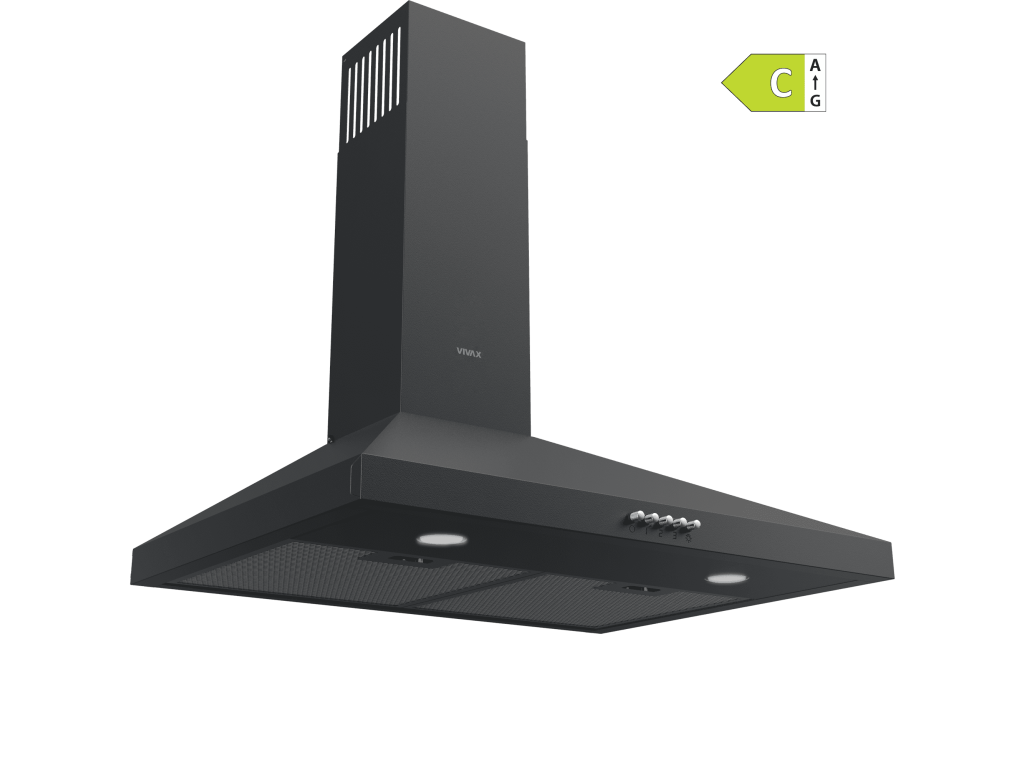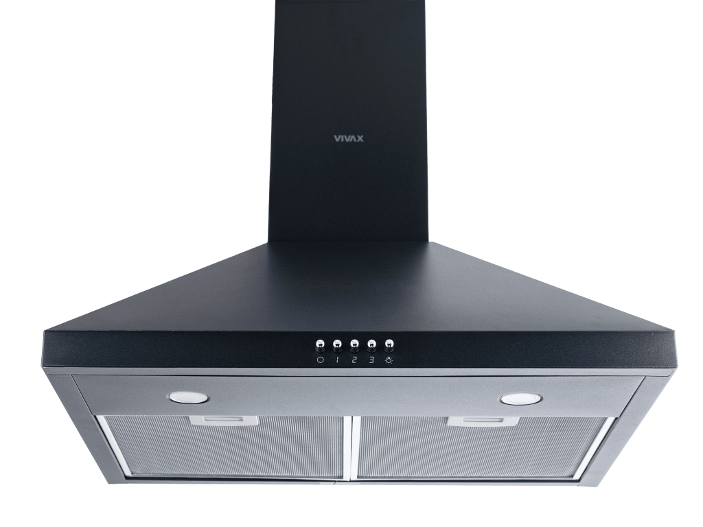 Moderní komínová digestoř VIVAX CHO-60CHC115T B v elegantním černém provedení se skleněným panelem. Nabízí nadstandardní sací výkon 379 m³/h a 3 stupně výkonu. Digitální dotykové ovládání, LED osvětlení a hliníkové tukové filtry dělají z tohoto odsavače výkonného pomocníka.