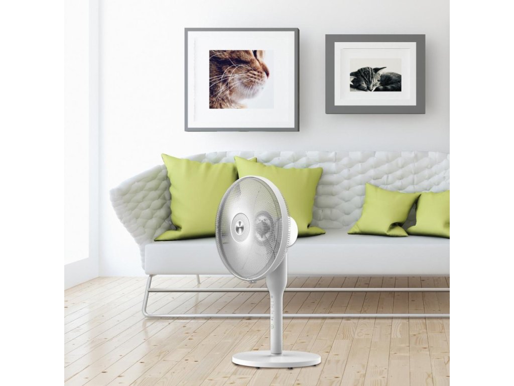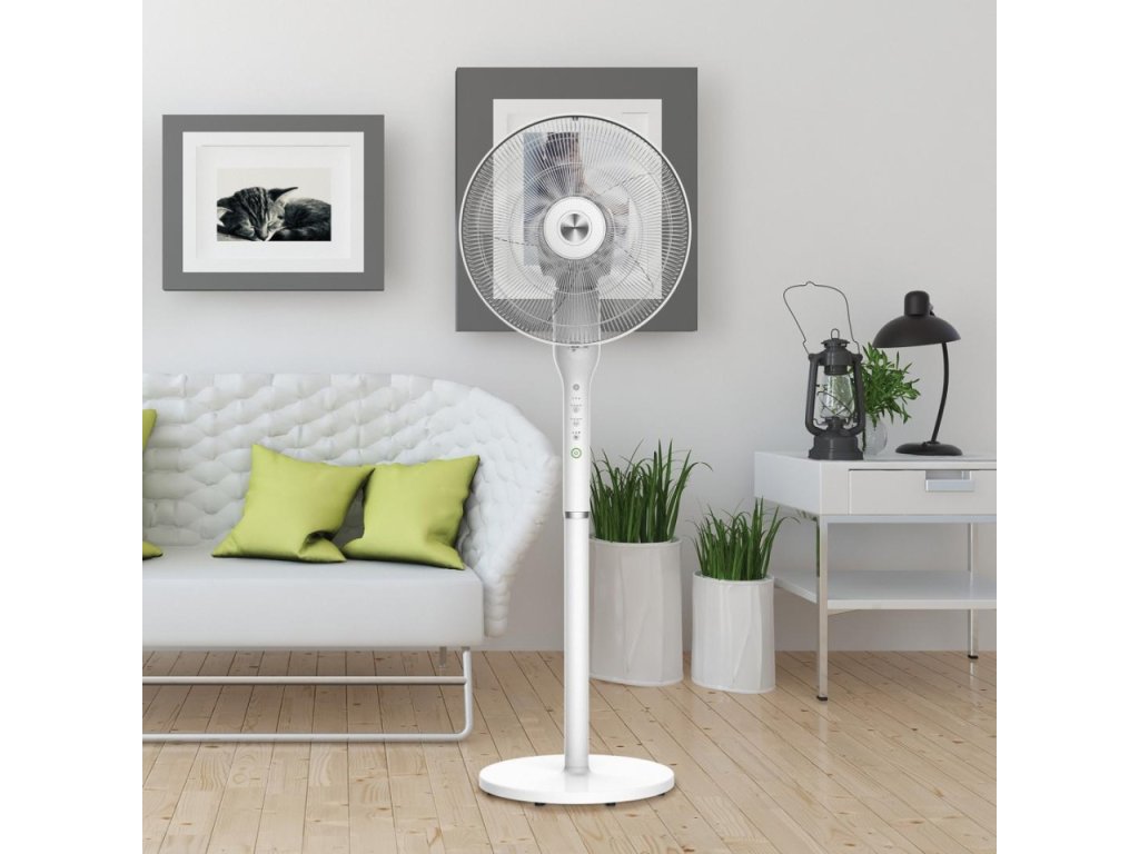 Funkce oscilace umožňuje rovnoměrné rozptýlení vzduchu po celé místnosti, takže se svěží vánek dostane do všech koutů prostoru. Nastavitelný stojan ventilátoru umožňuje upravit jeho výšku podle aktuálních požadavků a prostoru, což zvyšuje flexibilitu a pohodlí při používání. Ventilátor je navržen s důrazem na jednoduché a intuitivní ovládání, které zvládne opravdu každý člen domácnosti.
