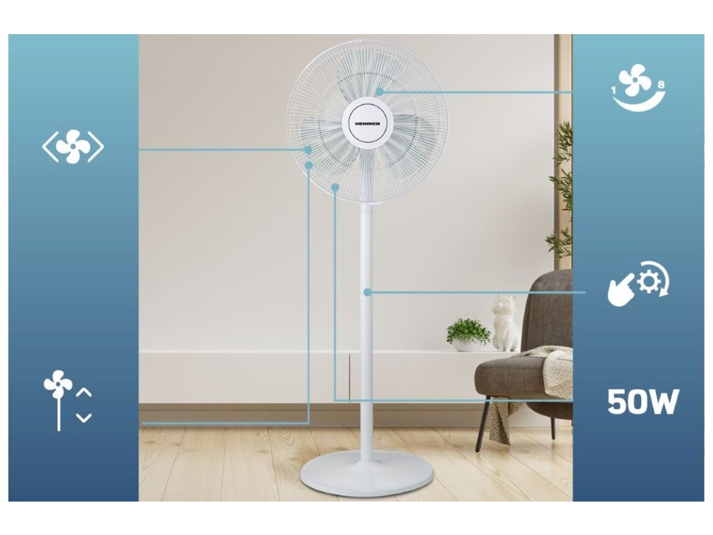 Heinner HSF-M50WH je navržen s důrazem na dlouhou životnost, spolehlivost a snadnou údržbu. Je vhodný pro každodenní používání a díky svým vlastnostem poskytuje komfortní prostředí i během těch nejteplejších dnů. Pokud hledáte výkonný, tichý a elegantní stojanový ventilátor, který vám zajistí příjemné ochlazení a pohodlí, je tento model skvělou volbou.