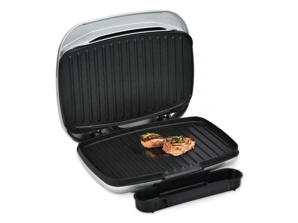 Kompaktní rozměry a nízká hmotnost grilu znamenají, že je snadno přenosný a vhodný i pro menší prostory nebo úložné skříňky. Elegantní stříbrné provedení dodává přístroji moderní vzhled, který ladí s většinou kuchyňského vybavení.