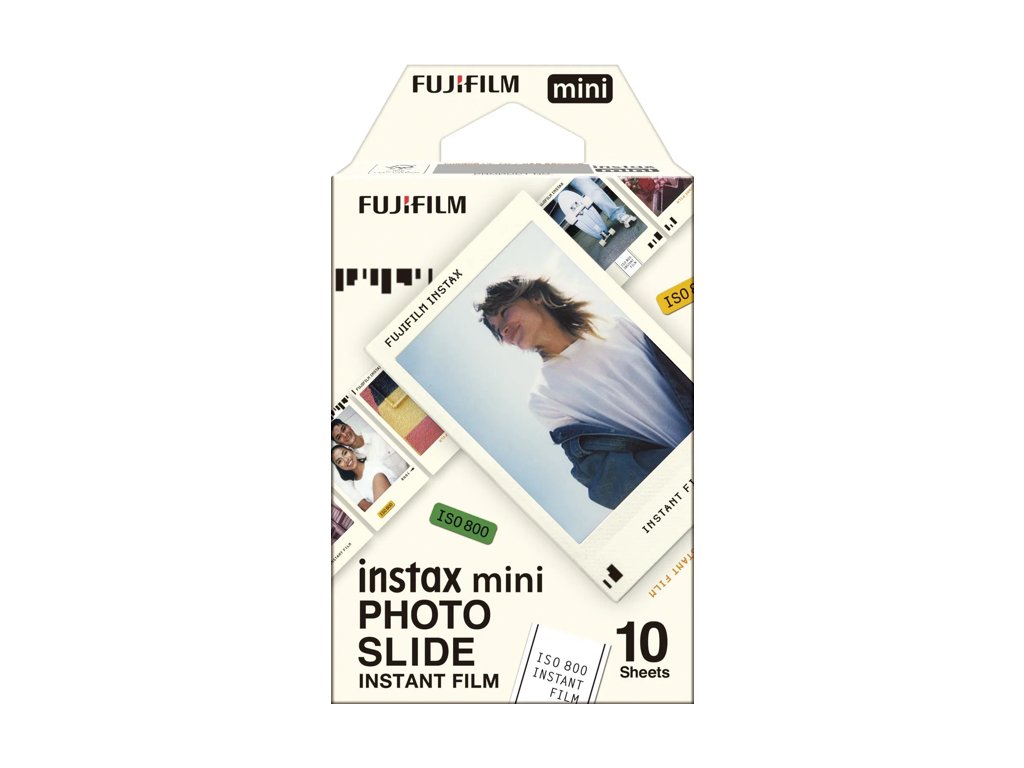 FujiFilm Instax mini Photo Slide 10ks je speciální edice instantního filmu pro všechny fotoaparáty a tiskárny řady Instax Mini. Tento film vyniká originálním rámečkem ve stylu diapozitivu s dekorativními symboly, což dodá fotografiím jedinečný a kreativní vzhled. Díky vytříbené struktuře zrna poskytuje film vysokou ostrost a čistotu obrazu, která je umocněna živou reprodukcí barev a jejich dlouhodobou stálostí. Citlivost ISO 800 zajišťuje ostré a jasné fotografie i za zhoršených světelných podmínek, přičemž proces vyvolání trvá zhruba 90 sekund v závislosti na okolní teplotě[1][2][3].