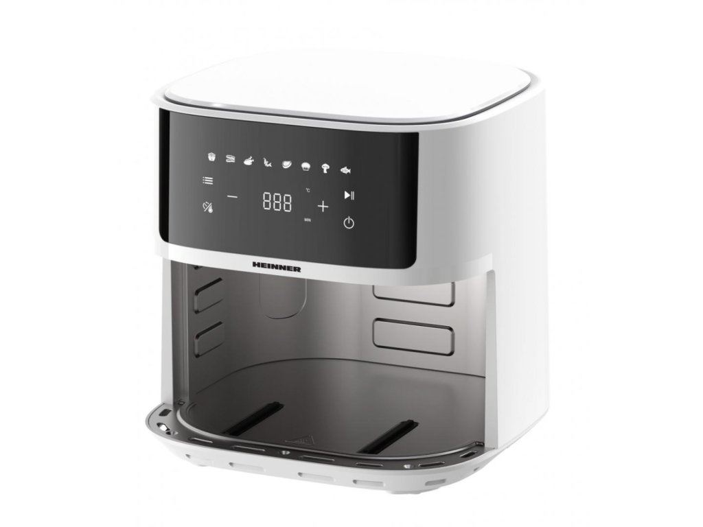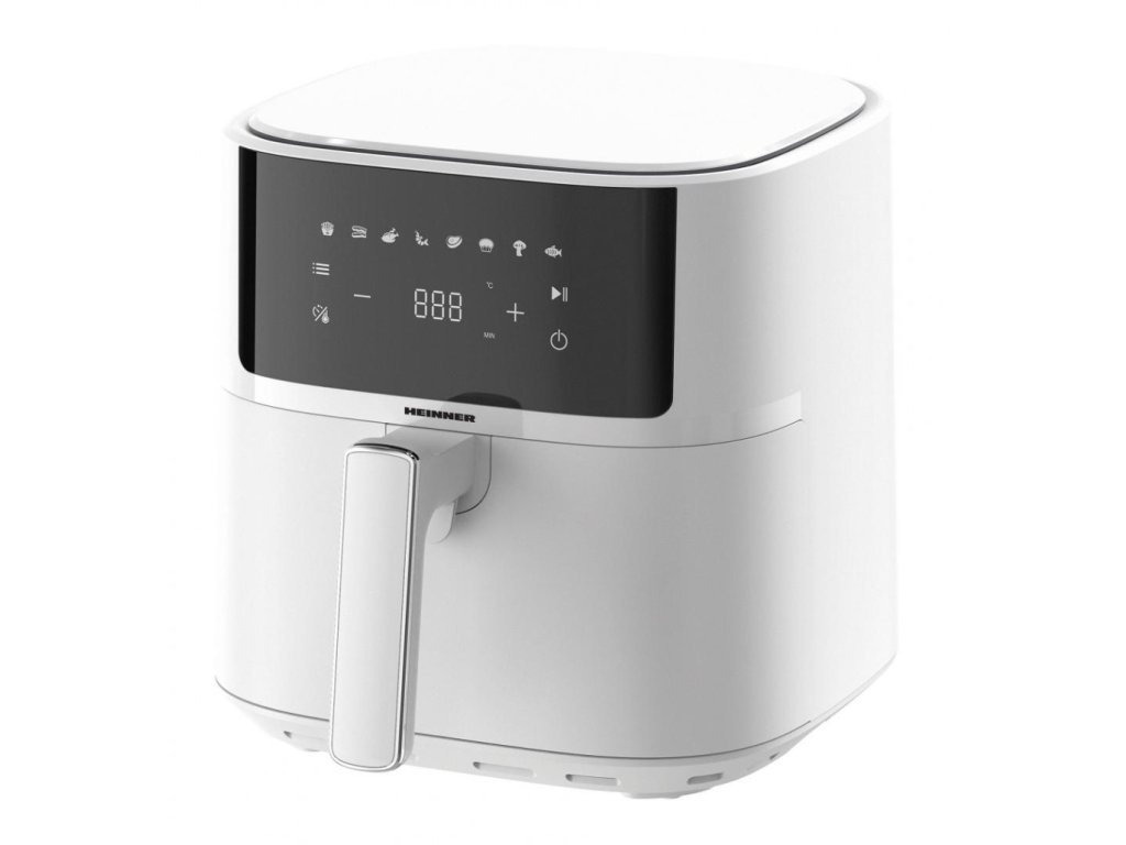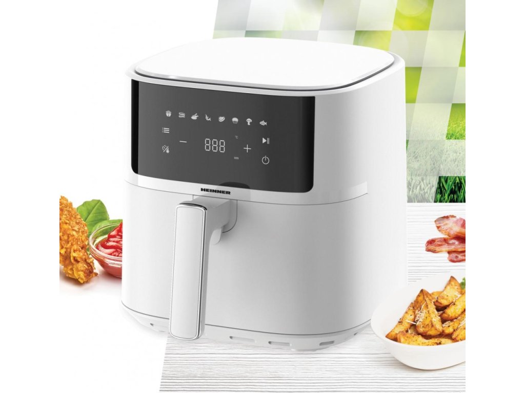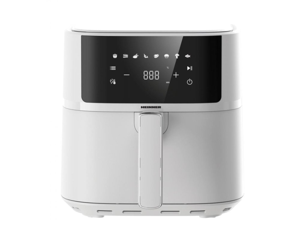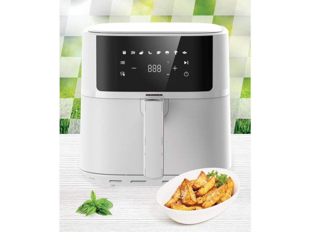 Horkovzdušná fritéza HEINNER HAF-B6WH17SQ je spolehlivý pomocník pro zdravější přípravu jídel s minimem oleje. Díky rychlé cirkulaci horkého vzduchu dosahuje křupavého povrchu a šťavnatého vnitřku, a to s výrazně nižším množstvím tuku než při klasickém smažení. Větší kapacita okolo 6 litrů je ideální pro 3–5 osob, takže bez potíží zvládne rodinné večeře i víkendové pohoštění. Intuitivní digitální ovládání s přehledným displejem a automatickými programy zjednodušuje volbu správného nastavení pro hranolky, kuřecí křídla, ryby, zeleninu či pečivo. Vyjímatelný nepřilnavý koš umožňuje snadné čištění a bezpečnostní prvky (automatické vypnutí, ochrana proti přehřátí) zajišťují klidný a spolehlivý provoz. Elegantní bílé provedení dodá kuchyni moderní a čistý vzhled.