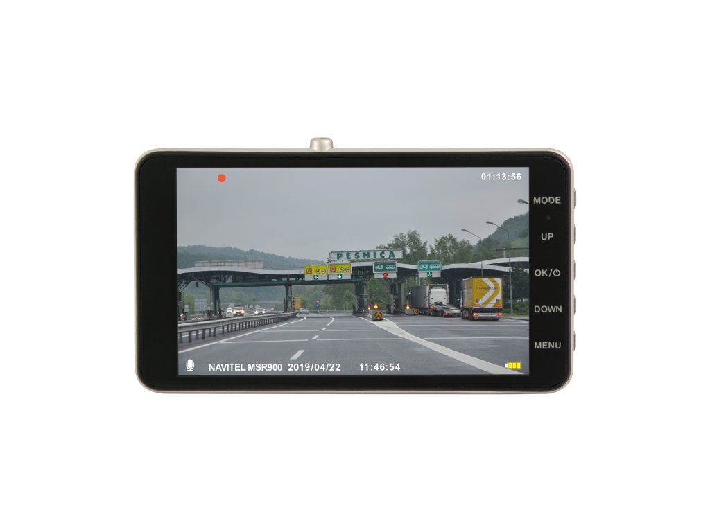 Navitel MSR900 je autokamera s odolným kovovým tělem a vysoce kvalitní skleněnou čočkou, vybavená technologií WDR (Wide Dynamic Range), která vyrovnává kontrasty na záběru a upravuje ztmavené i přesvětlené oblasti. Kamera zaznamenává video ve vysokém Full HD rozlišení 1920 x 1080 px při 30 snímcích za sekundu s širokým 170° úhlem záběru, který pokrývá vedlejší jízdní pruhy i silnici.