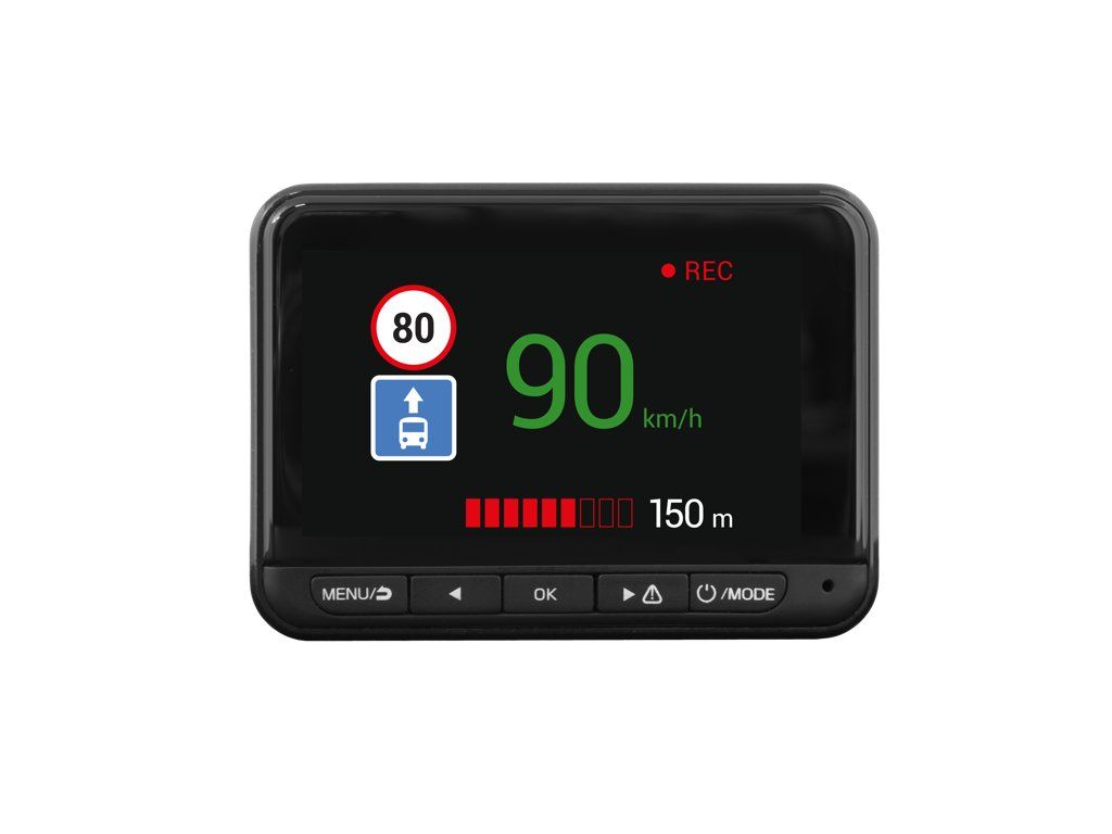 Jasný 3” IPS displej s vysokým rozlišením je snadno čitelný z jakéhokoli úhlu. V režimu detekce a upozornění zobrazuje displej všechny potřebné informace pro pohodlnou a bezpečnou jízdu. Nastavení DVR (stejně jako prohlížení fotografií a videí) lze provádět přímo na dotykové obrazovce a dobře promyšlené uživatelské rozhraní menu jej maximálně zjednodušuje a urychluje.