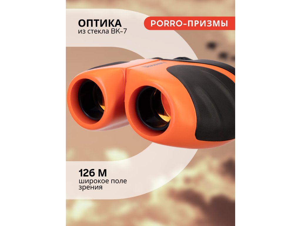 Optika je vyrobena ze skla BK-7, přiblížení je 8x a průměr čoček objektivu je 21 mm. Zorné pole je vhodné pro pozorování rychle se pohybujících objektů nebo skupin objektů, např. atletů na stadionu. Středové zaostřovací kolečko slouží k nastavení ostrosti obrazu.