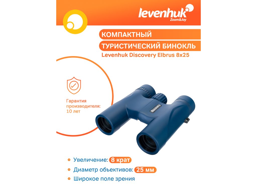 Kompaktní binokulární dalekohled Levenhuk Discovery Elbrus 8x25 je určen pro ty, kteří rádi cestují nalehko a potřebují funkční a pohodlný optický přístroj k poznávání přírody a městské architektury. Tento binokulární dalekohled je nejvhodnější pro denní pozorování; poskytuje vysoce kvalitní obraz a má všechny potřebné funkce, které se přizpůsobí každému uživateli.