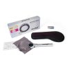 Hlavní čočka má průměr 88 mm a umožňuje vám studovat rozměrnější předměty nebo tisky. Dvě zabudované LED diody zajišťují rovnoměrné osvětlení pozorovaného předmětu a při dlouhém pozorování nezatěžují vaše oči. Napájení zajišťují dvě baterie AA, jež jsou součástí dodávky lupy a budou vám sloužit řadu let. K zapínání a vypínání osvětlení slouží pryžové tlačítko na straně rukojeti.