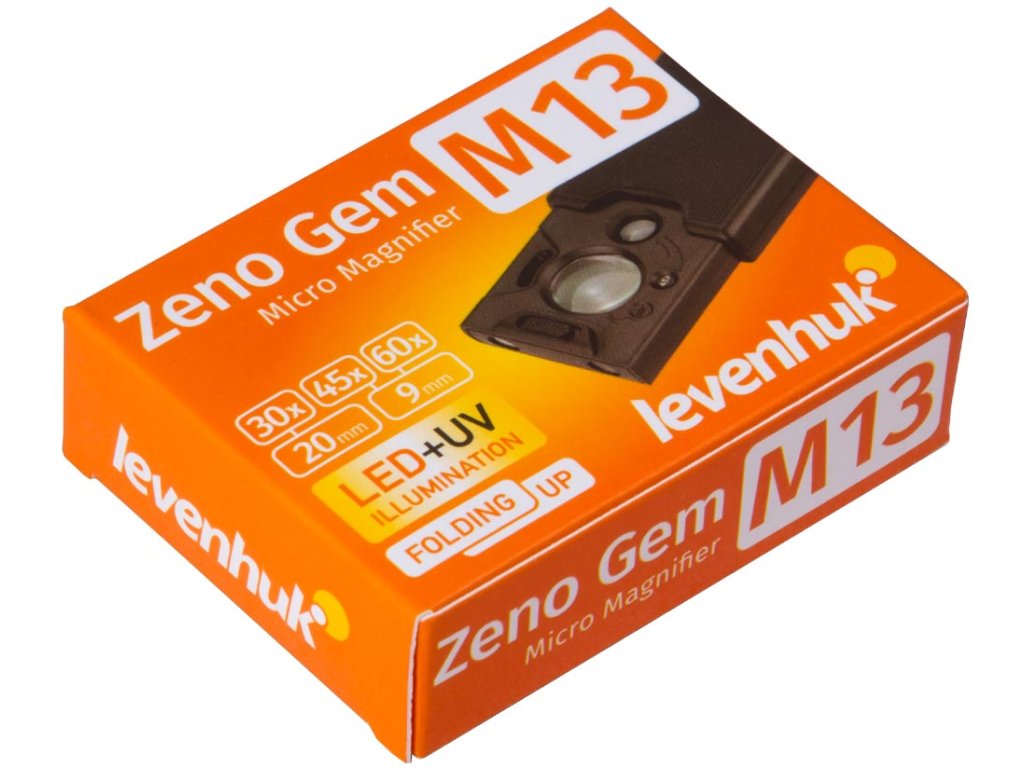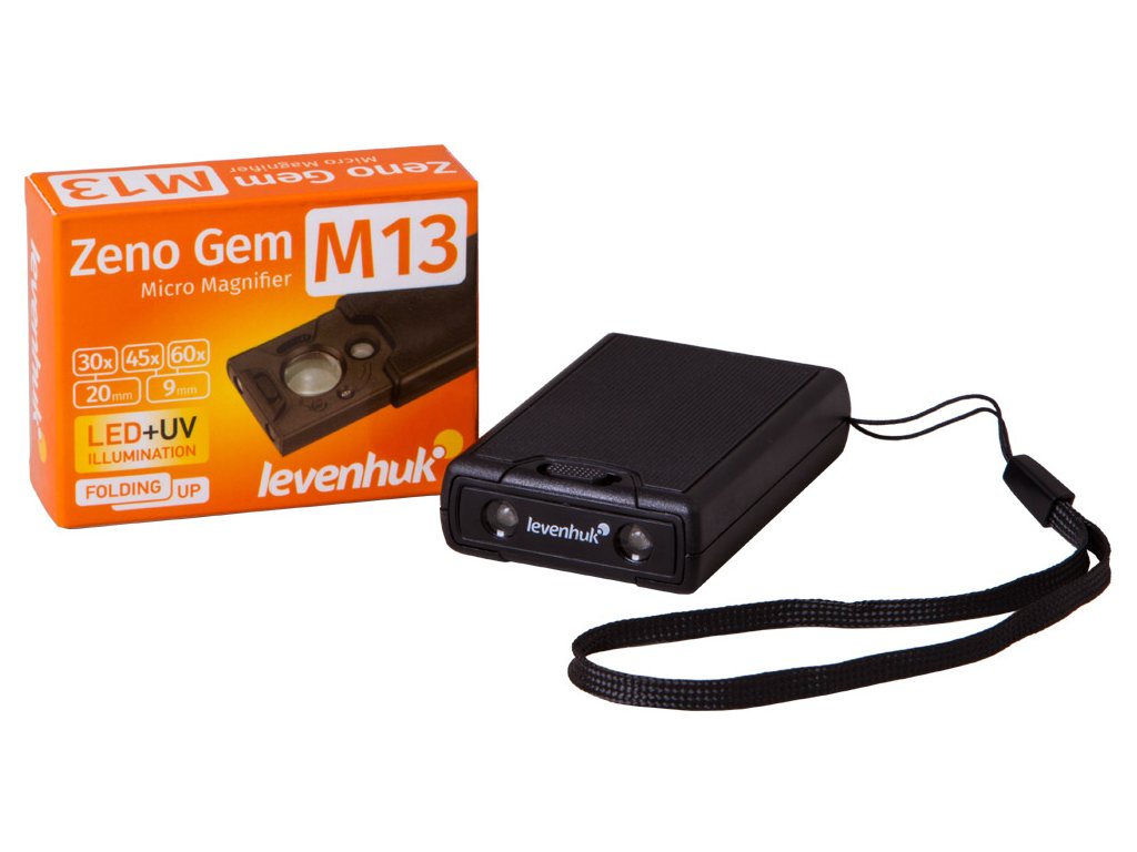 Lupa Levenhuk Zeno Gem M13 je výkonné zvětšovací zařízení určené pro sběratele, hodináře a klenotníky. Je ideální k profesionálnímu použití i pro každodenní účely. Je vybavena vestavěným osvětlením dvou typů a nabízí tři pevné hodnoty zvětšení 30x, 45x a 60x. Čočky jsou vyrobeny z optického polymerového skla, který nabízí jasný a kontrastní obraz a neublíží jim menší náraz ani pád z nevelké výšky.