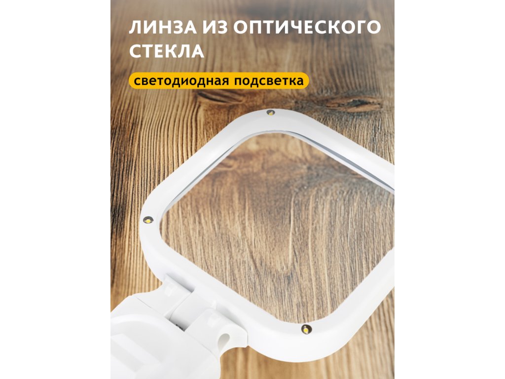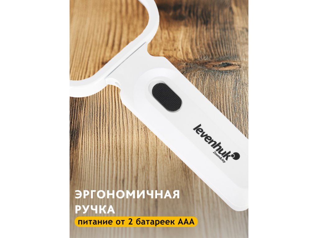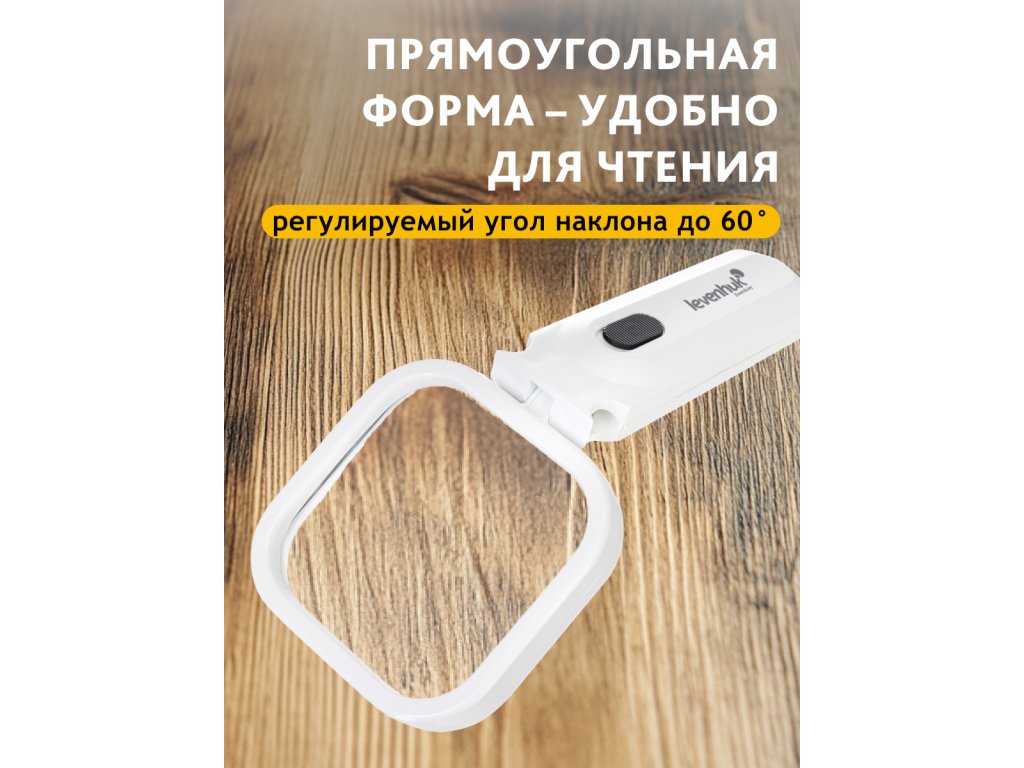 Všechny optické prvky této lupy jsou vyrobeny z optického polymerového skla. Lupa se díky své nízké hmotnosti dobře drží v ruce. Čočka poskytuje ostrý obraz bez rozmazání nebo optických vad. Lupa poskytuje variabilní úhel sklonu. Vedle čočky je k dispozici také LED osvětlení. Jas lze nastavit pomocí spínače na těle lupy. Osvětlení vyžaduje nabíjení pomocí baterií (nejsou součástí dodávky).