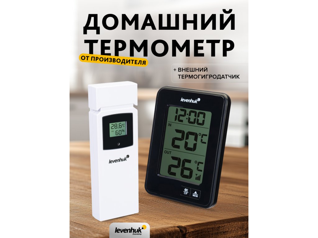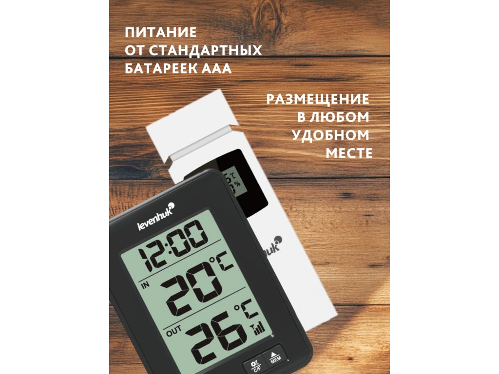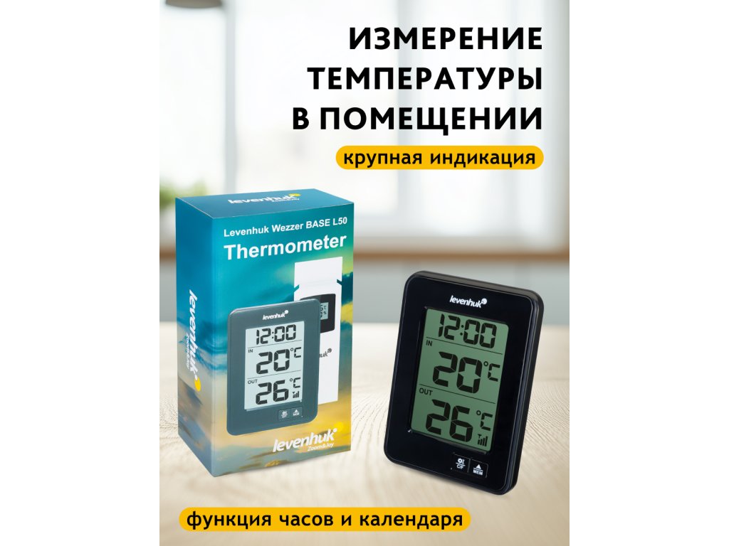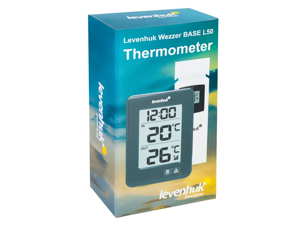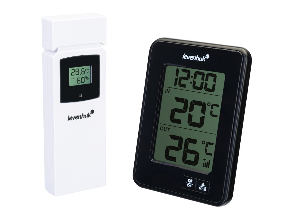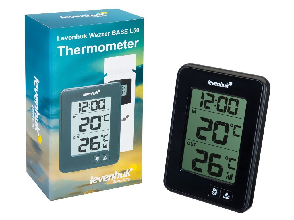 Teploměr Levenhuk Wezzer BASE L50 měří teplotu uvnitř i venku. Můžete tak získat nejpřesnější údaje o klimatu specifické pro danou lokalitu, aniž byste museli využívat služby třetích stran pro předpověď počasí. Vždy budete mít přehled o tom, kdy se náhle ochladí. Teploměr je dodáván se senzorem dálkového ovládání, který měří venkovní teploty a zaznamenává úroveň vlhkosti. Senzor je připojen k základnové stanici – pro provoz přístroje nejsou zapotřebí žádné kabely.