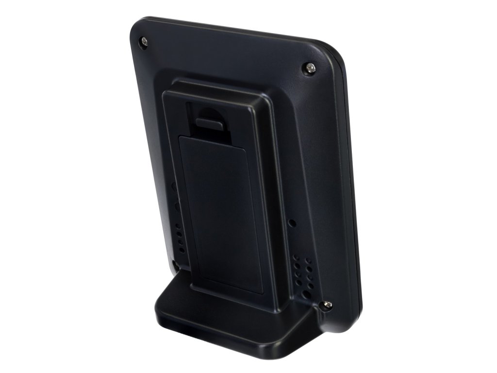 V horní části obrazovky teploměru Levenhuk Wezzer BASE L50 se zobrazují hodiny a hned pod nimi najdete velké číslice hodnot vnitřní a venkovní teploty. Minimální a maximální hodnoty se ukládají do paměti přístroje pro analýzu počasí za určité období. Senzor dálkového ovládání má malou obrazovku, takže výsledky jeho měření můžete kontrolovat přímo v místě umístění. Hodnoty vlhkosti jsou k dispozici pouze na obrazovce senzoru. Základnová stanice je umístěna na stole nebo okenním parapetu a senzor je namontován na stěně.