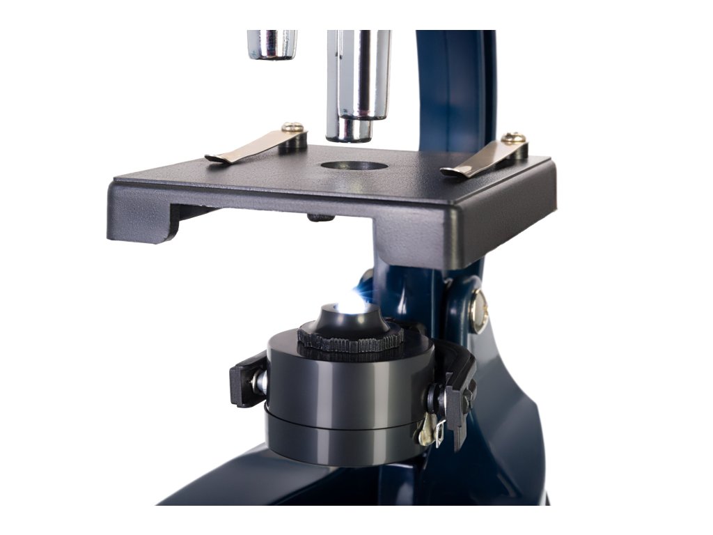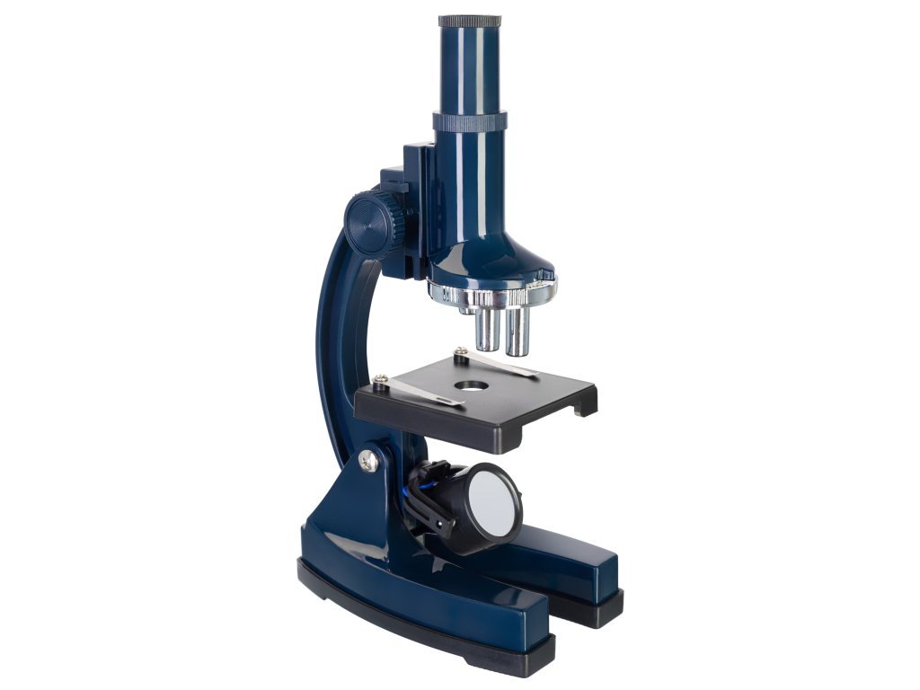 Jedná se o monokulární mikroskop s revolverovým nosičem objektivů se třemi čočkami a spodním osvětlením. Rozsah zvětšení se pohybuje od 100x do 300x, což je dostatečné pozorování na základní úrovni. Stolek má dva držáky vzorku a aperturní clonu. Zajímavé řešení osvětlení: duální systém osvětlení, který se skládá z obyčejného zrcátka a žárovky s bateriovým napájením. Díky tomu lze používat přirozené i umělé světlo.
