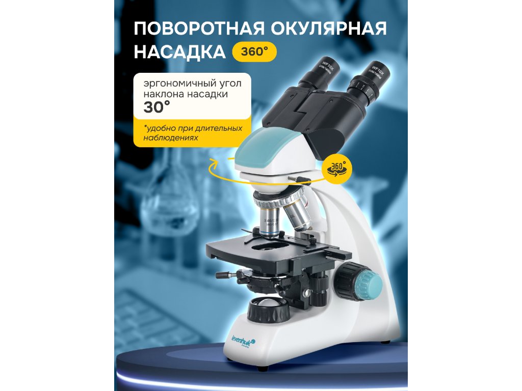 Levenhuk 400B je binokulární laboratorní mikroskop pro profesionální práci pro mikrobiologa, zdravotnického pracovníka, veterináře, ornitologa, ekologa nebo biochemika. Tento univerzální model lze použít jak pro pozorování ve světlém poli i s použitím metody olejové imerze. Tento mikroskop má spolehlivé kovové tělo, vysoce kvalitní achromatickou optiku a jasné LED osvětlení s kolektorem.