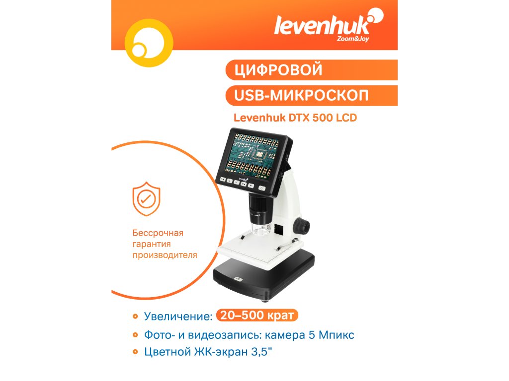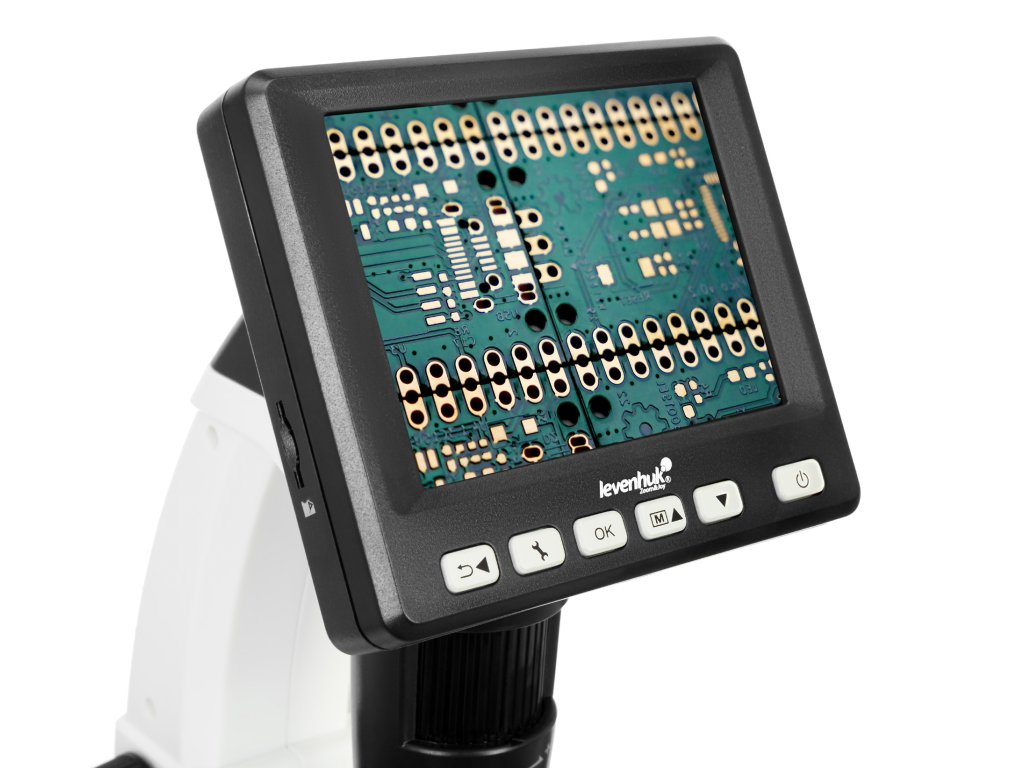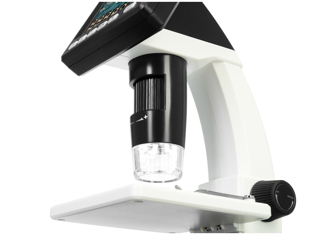 Barevný 3,5" LCD displej tohoto mikroskopu je vybaven tlačítky rychlého přístupu, která vám umožňují snadno nastavit jas, expozici a vyvážení barev. Levenhuk DTX 500 LCD můžete pomocí kabelu USB, který je součástí soupravy, snadno připojit ke svému PC a všechny soubory vytvořené během pozorování zkopírovat na pevný disk. Tento model je dále vybaven výstupem AV, který umožňuje sledovaný obraz v reálném čase přenášet na obrazovku televizoru nebo do projektoru.