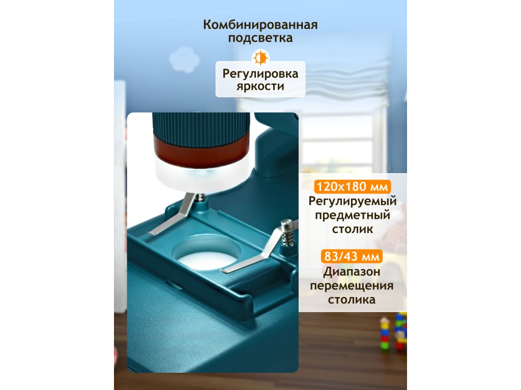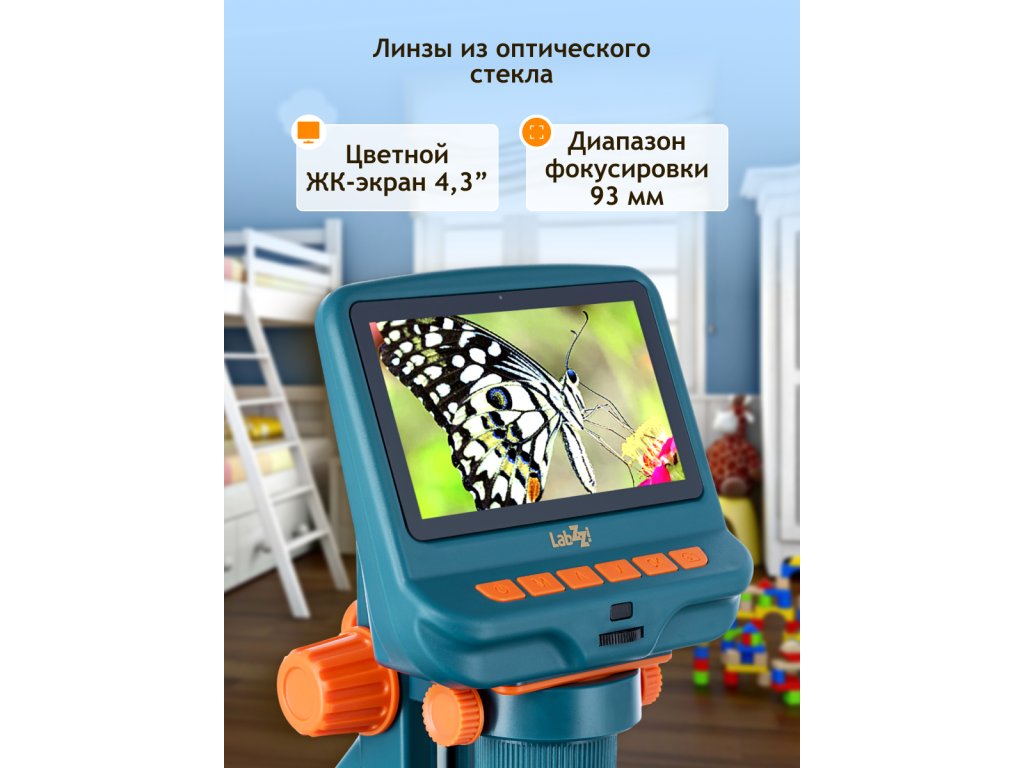 Mikroskop je vybaven barevnou LCD obrazovkou. Její úhlopříčka je 4,3". Zobrazený obraz je barevný, jasný a s dobrým kontrastem. Nabízí zvětšení v rozsahu 17x až 220x, z toho optická část 7x až 55x. Po připojení k počítači USB kabelem a lze pomocí softwaru k zachycení snímků obrazovky zobrazit snímky na obrazovce počítače. Mikroskop obsahuje dva zdroje světla: horní a spodní LED světla. To umožňuje sledování vzorků libovolné průsvitnosti. Mikroskop je vybaven regulací jasu.