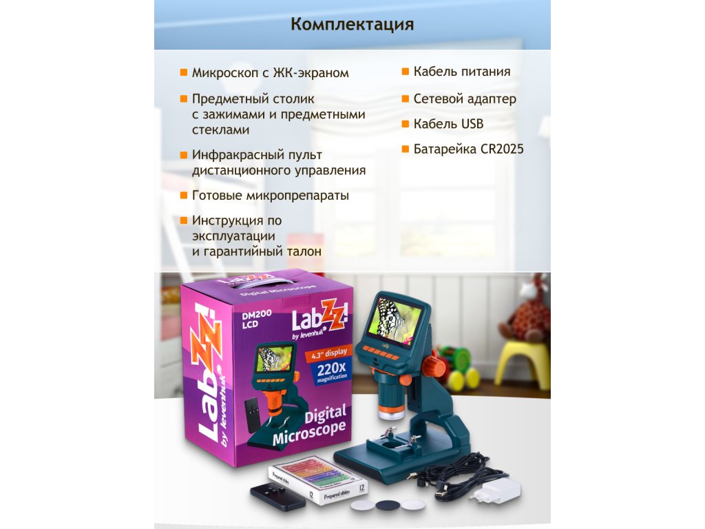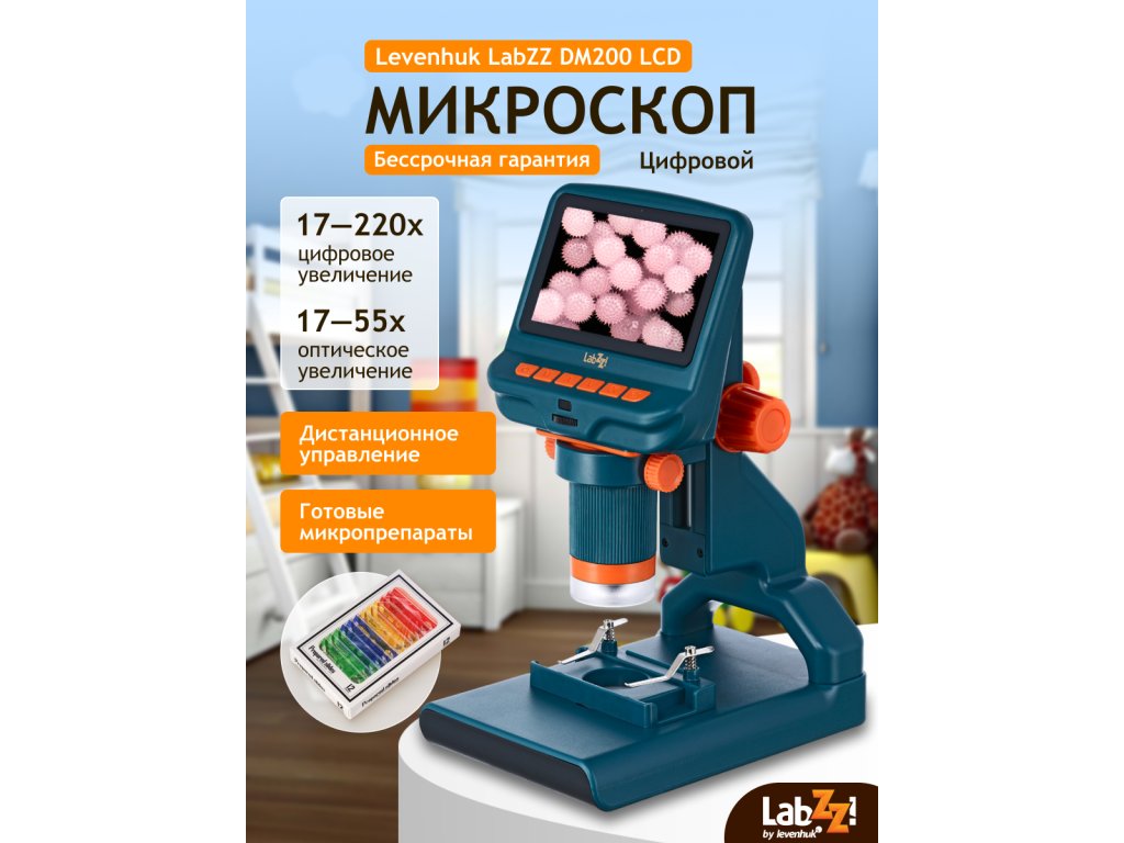 Levenhuk LabZZ DM200 LCD je digitální mikroskop s pestrým a zajímavým designem. Děti ocení nejen optické, ale i digitální vlastnosti tohoto mikroskopu. Umožňuje fotografování vzorků, zaznamenávat videa z výzkumu a zobrazovat snímky na obrazovce počítače. Mikroskop lze použít k pozorování čehokoli: předem připravených mikroskopických preparátů, kamínků, tkanin, listů, elektroniky i malých mechanismů. Mikroskop je skvělým pomocníkem pro vědecké koníčky i pro studium.