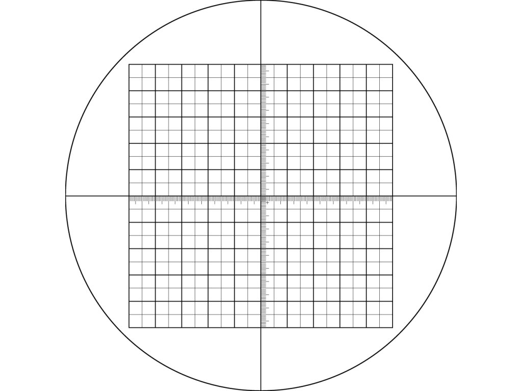 Na sklíčku je vyleptaná optická mřížka 10x10 mm. Uprostřed sklíčka je nitkový kříž – dvě mikrometrické stupnice o 200 dílcích. Dělení stupnice je 0,05 mm a délka každé stupnice je 10 mm.
