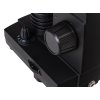 Pracovní stolek mikroskopu s posuvnými měřítky vám umožňuje nastavit pozorovaný preparát, aniž byste se jej museli dotýkat rukama. Tento model je vybaven LED osvětlením. Spodní osvětlení se používá k pozorování transparentních preparátů v procházejícím světle a horní osvětlení ke studiu neprůhledných preparátů v odraženém světle. Pod pracovním stolkem je kotouč se šesti filtry.