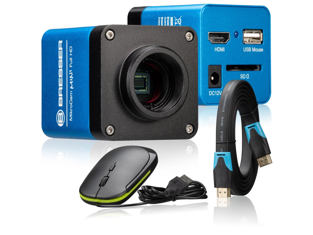 The MikroCam MINI Full HD HDMI is a very compact HDMI camera. No PC or laptop is needed to use it, simply connect to a monitor, TV, beamer or smartboard. This makes the camera especially suited for teaching. As a plus, you can also mount the BRESSER HDMI display (item no. 5914120) directly on the camera.