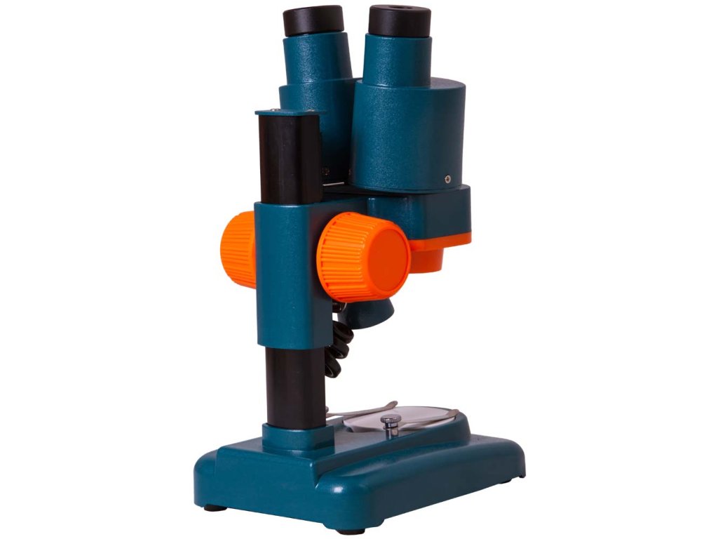 Binokulární hlavice umožňuje pozorování objektů oběma očima – tím jim ulevíte a dlouhodobý výzkum bude pohodlnější. Světelné diody umístěné nad pracovním stolkem rovnoměrně osvětlují pozorovaný vzorek. Stolek má kovové spony, které pevně drží připravený preparát. Čočka objektivu poskytuje zvětšení 2x a s dodávaným příslušenstvím budete moci dosáhnout zvětšení až 40x. Dva širokoúhlé okuláry umožňují studovat i větší objekty.