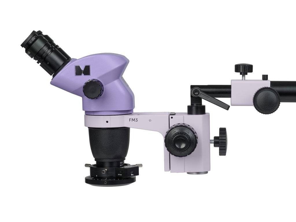 - Univerzální stojan rozšiřuje pracovní plochu a umožňuje přesné umístění hlavy mikroskopu nad preparátem a jemné mikronastavení polohy hlavy